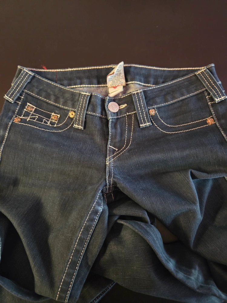 Selling a pair of True Religion jeans in size 25. They are in good condition and feature the classic True Religion design with detailed stitching. Perfect for adding a stylish touch to your wardrobe!