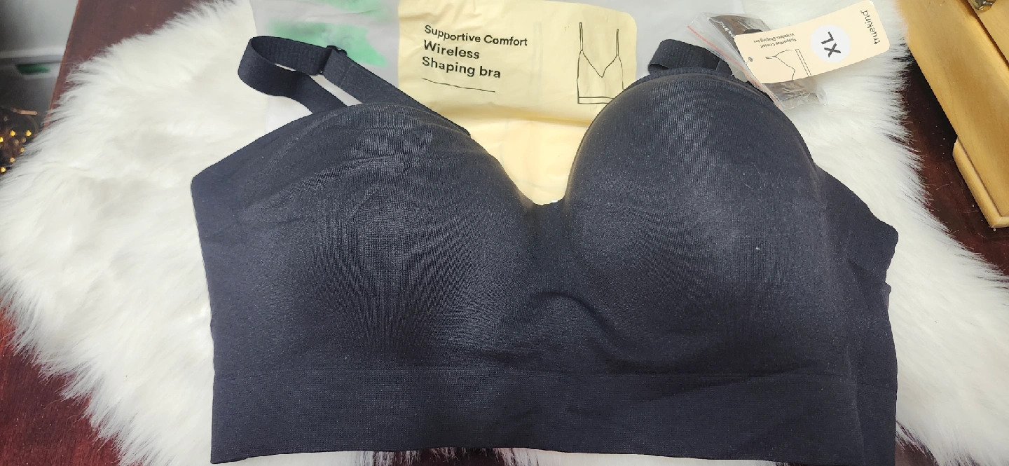 213Selling a new Truekind Supportive Comfort Wireless Shaping Bra in size XL. It's a black bra that offers supportive comfort and a shaping effect without the use of wires. Perfect for everyday wear! I only took it out of the package to take pics. I have 2 available because I forgot to cancel my online order.