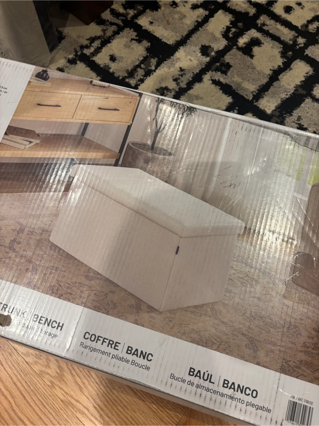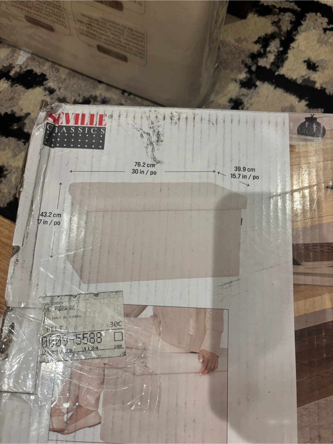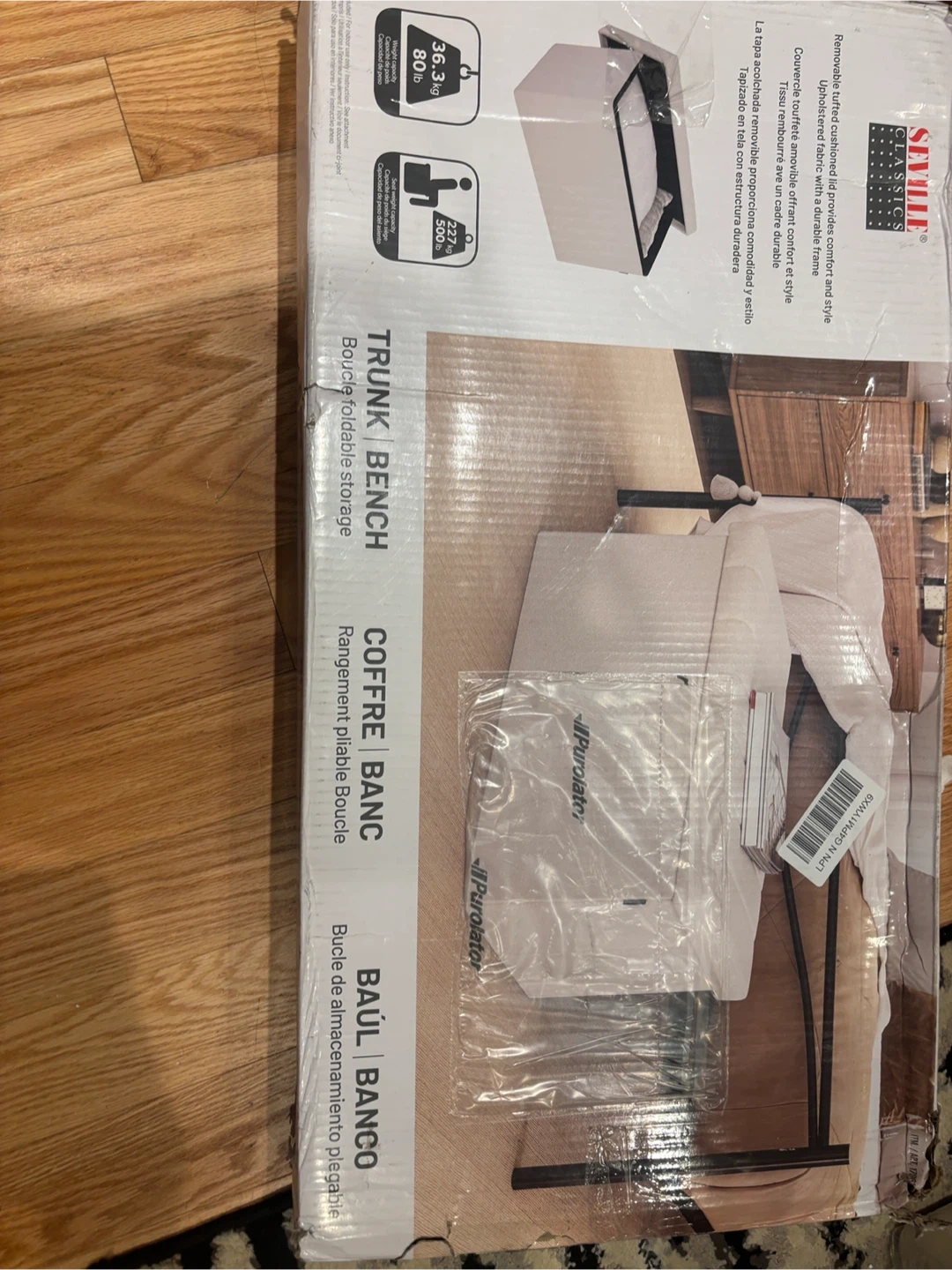 202I have a brand new Seville Classics Trunk Bench still in its original packaging! This versatile piece offers both seating and storage, perfect for any room. Key features: - Dimensions: 76.2 cm (30 in) length, 39.9 cm (15.7 in) width, 43.2 cm (17 in) height - Stylish and functional - Great for decluttering your space