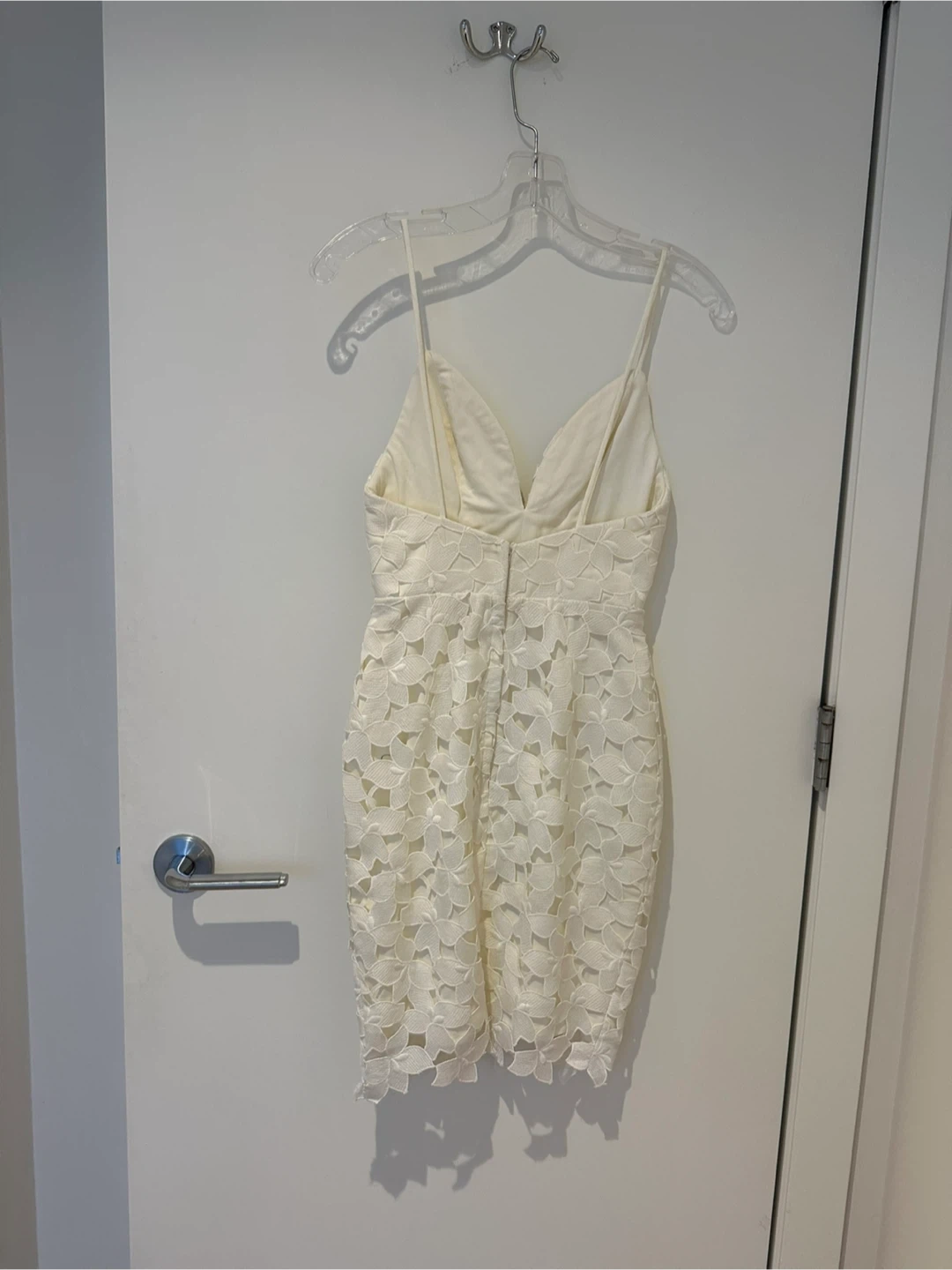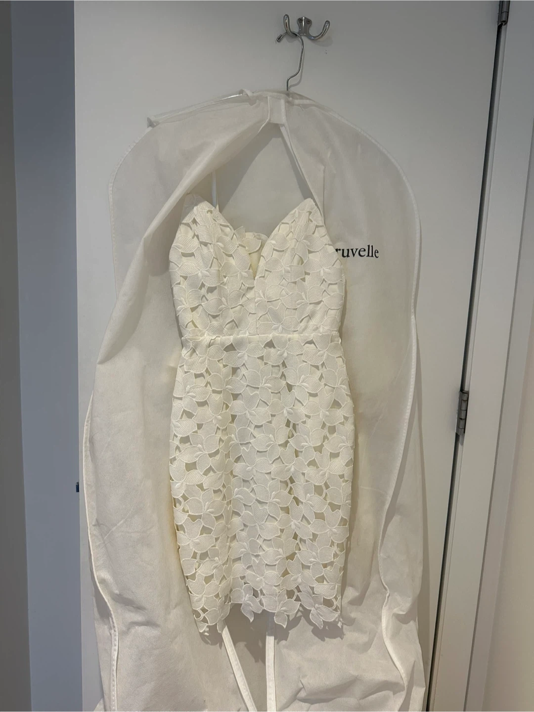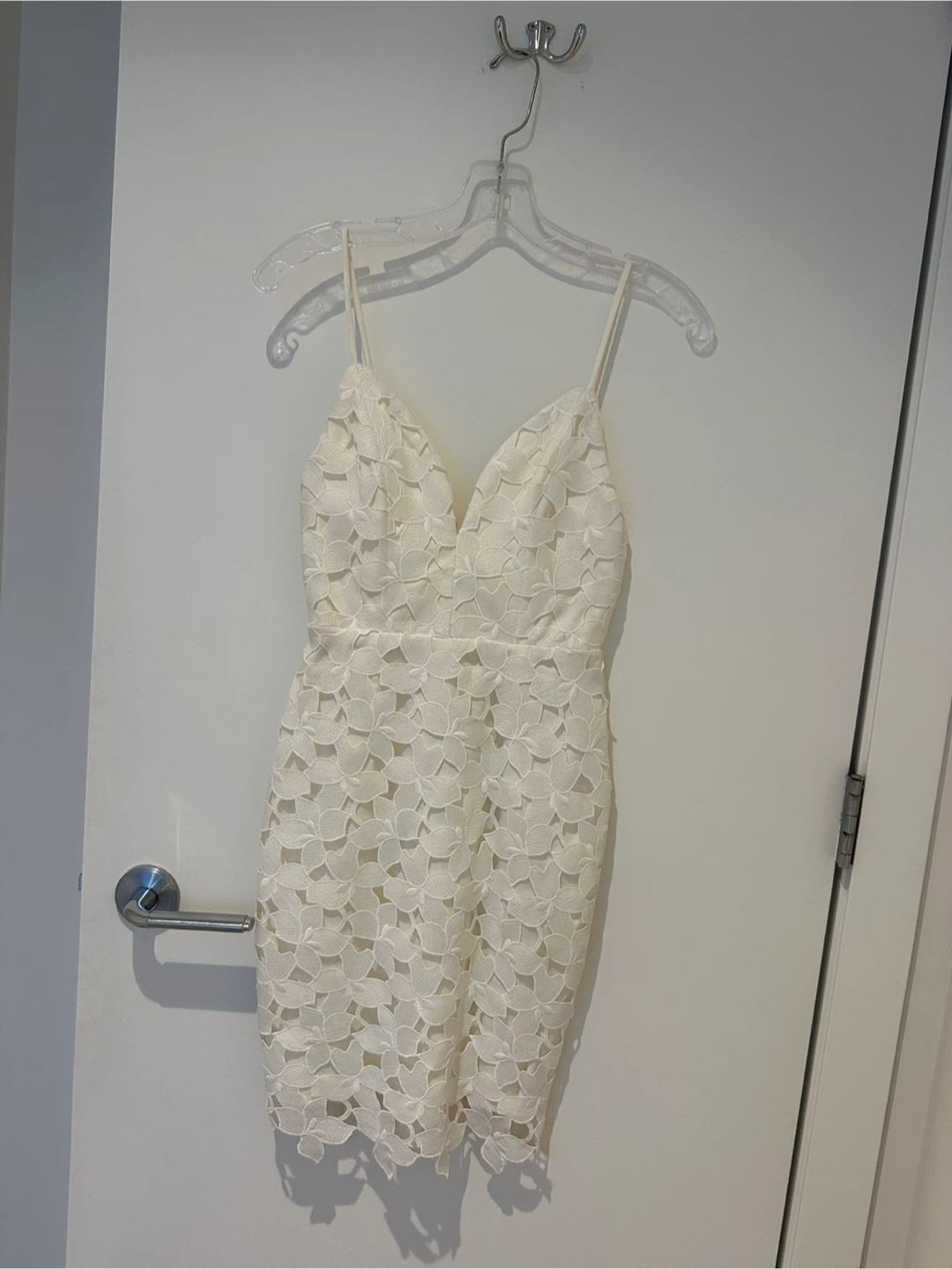 Selling a beautiful white lace mini dress from Truvelle! It's in great condition and perfect for a special occasion. The intricate lace detailing gives it a delicate and elegant look. Comes with the original garment bag! Worn only once.