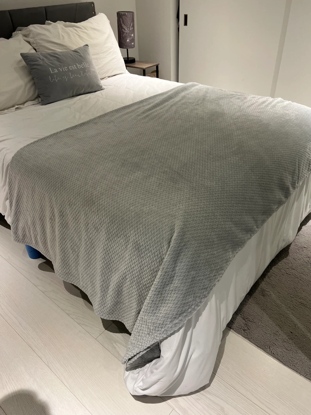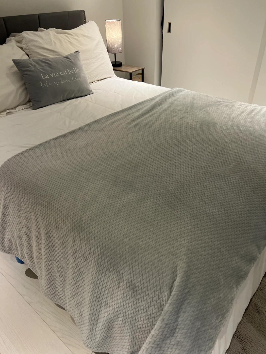 Grey Fleece Throw Blanket 86 x 86