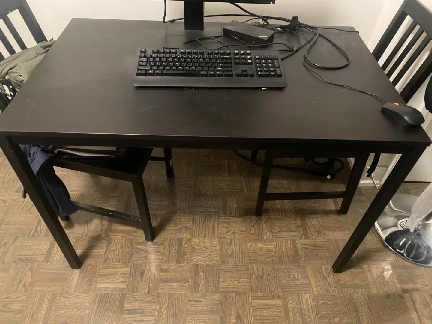 I’m selling this table and chair set - I use the table as my work from home table (monitor and keyboard not for sale)