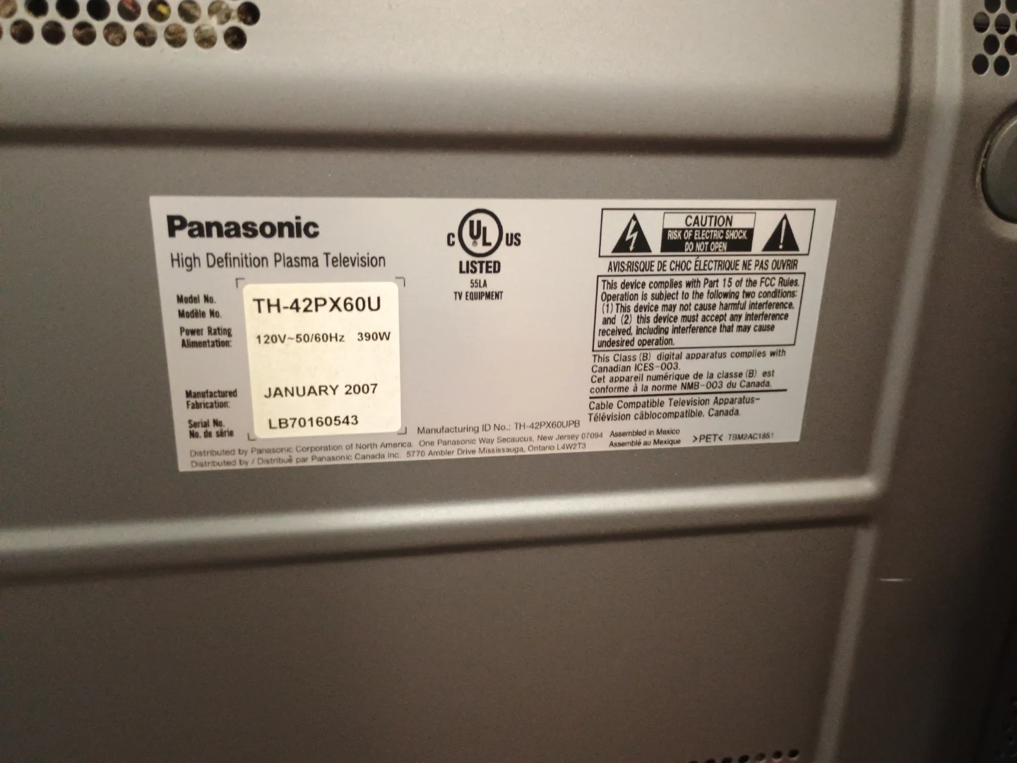 🥕 Panasonic TH-42PX60U 42" Flat Screen TV