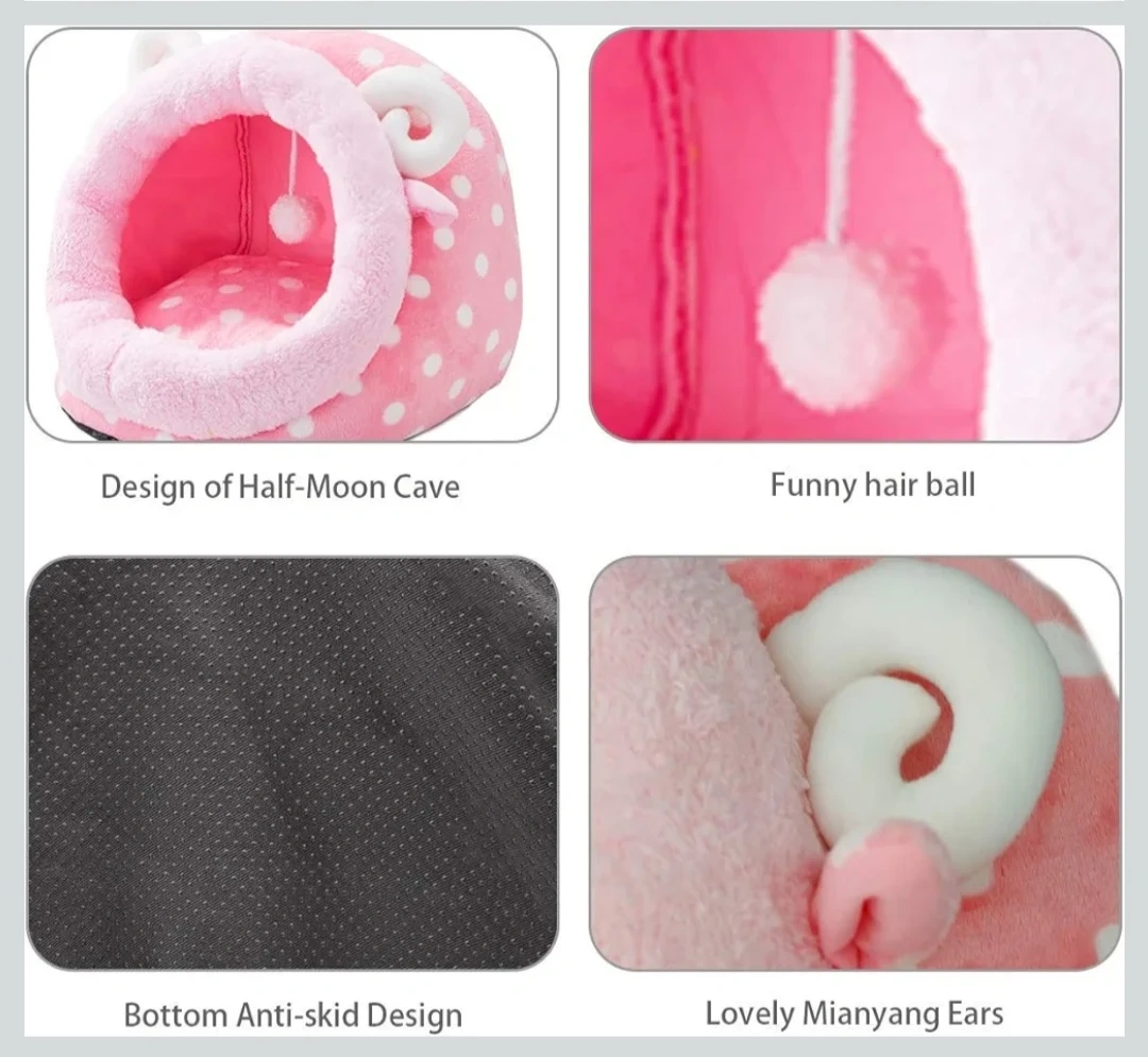Pet Cave Beds, Indoor Outdoor Microfiber Cat Beds a Matching Removable Washable Cushioned Pillow Pad Non-Slip and Durable Cozy Kitten Bed