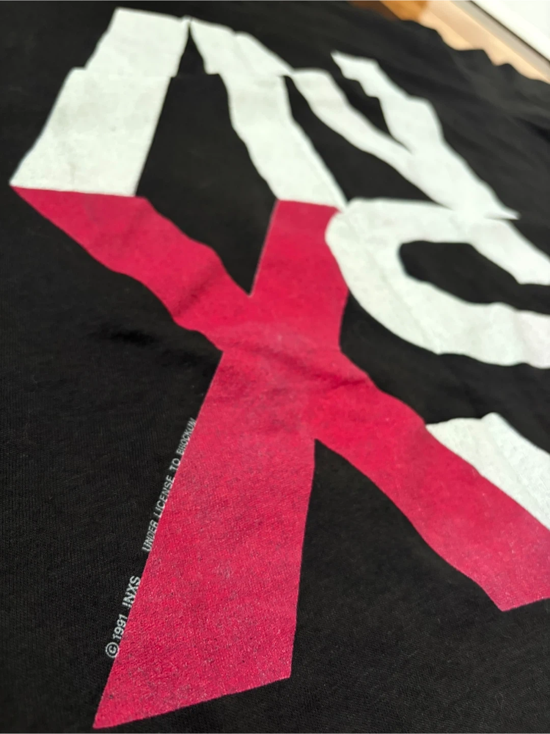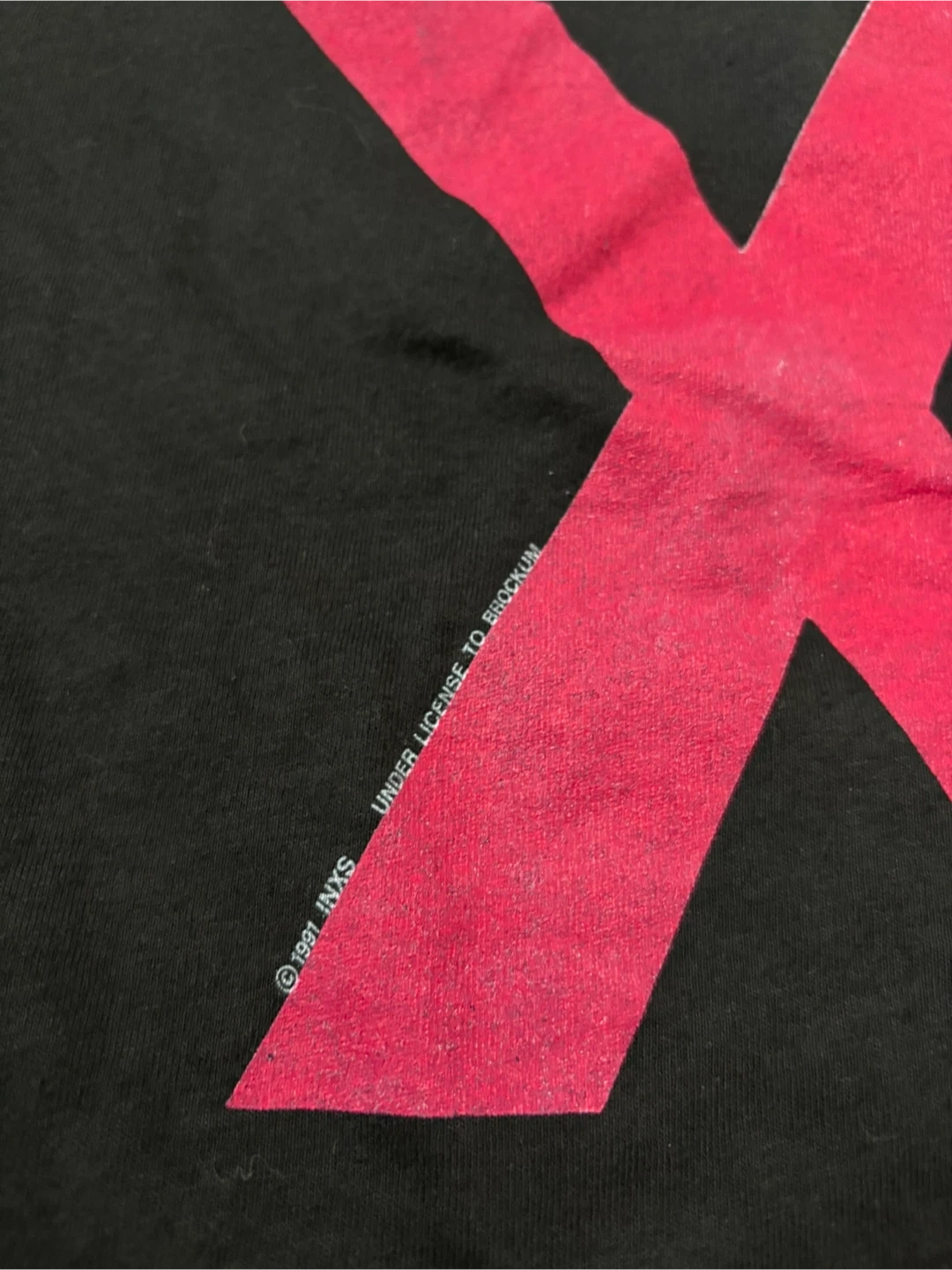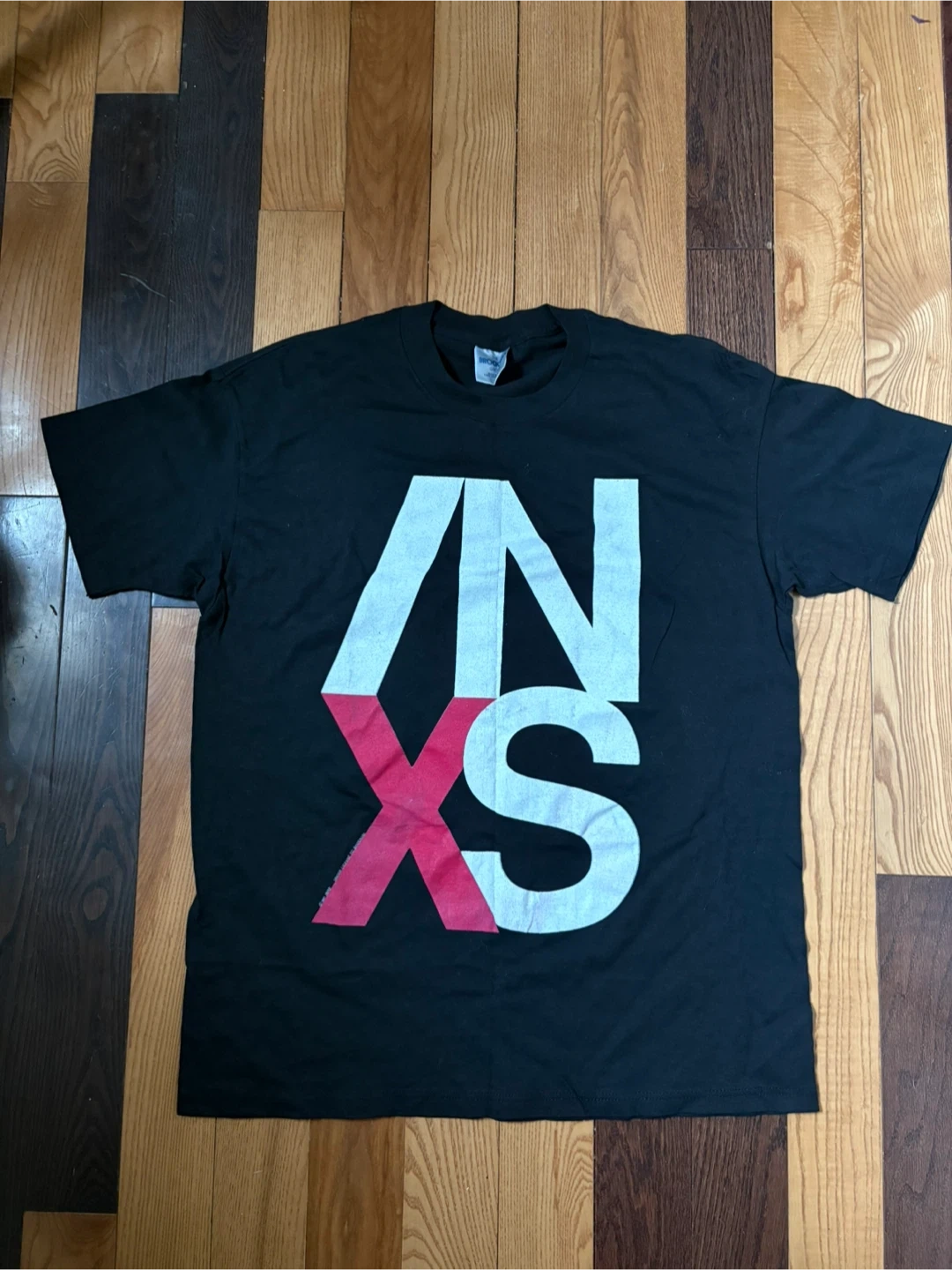 Vintage black INXS t-shirt from 1991. Features the iconic "X" logo on the back with tour dates and "INXS" text on the front. Made in U.S.A. by The Brockum Group. Size XL.