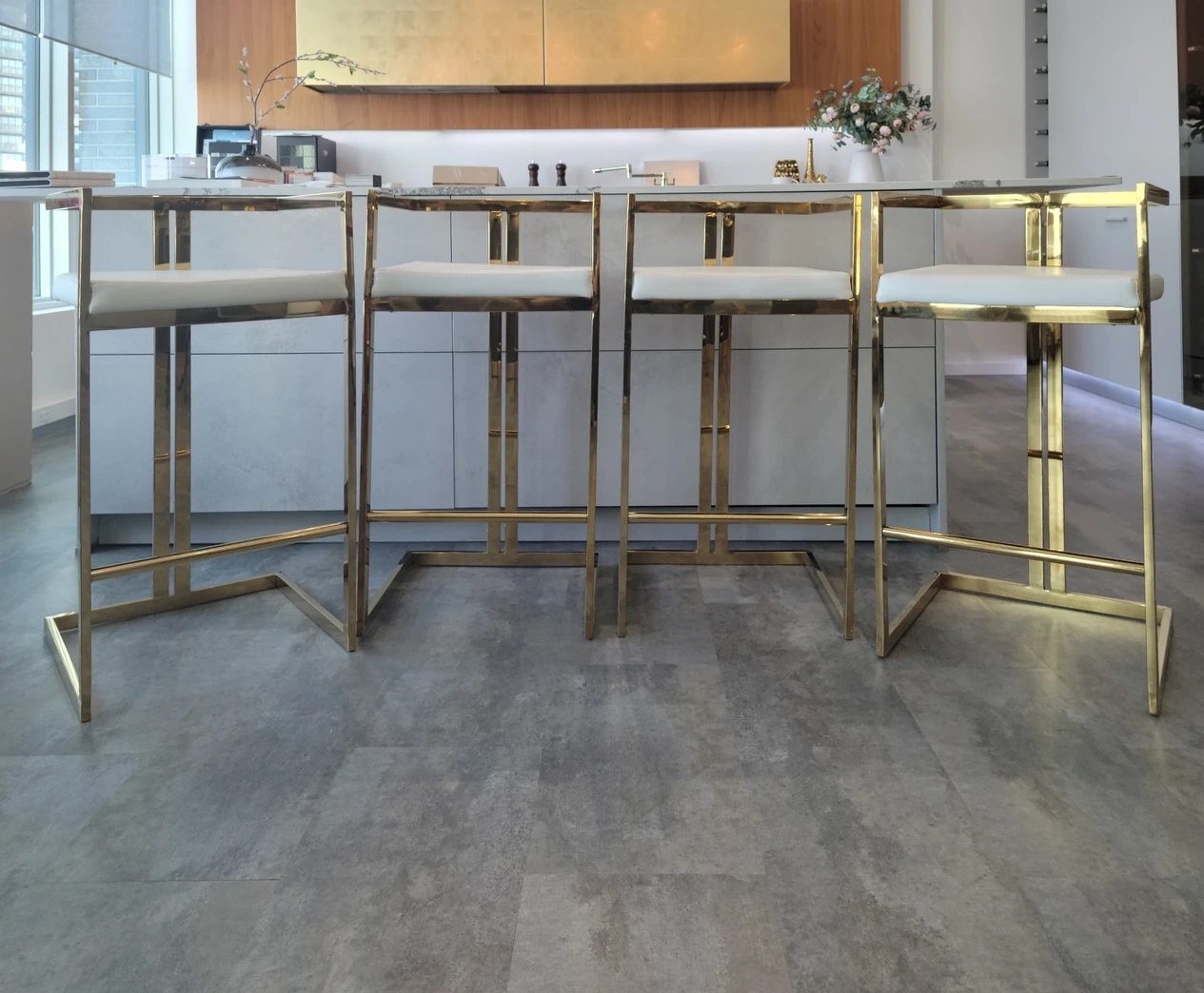 4 Bar Stools- modern Art Deco style (white/gold)