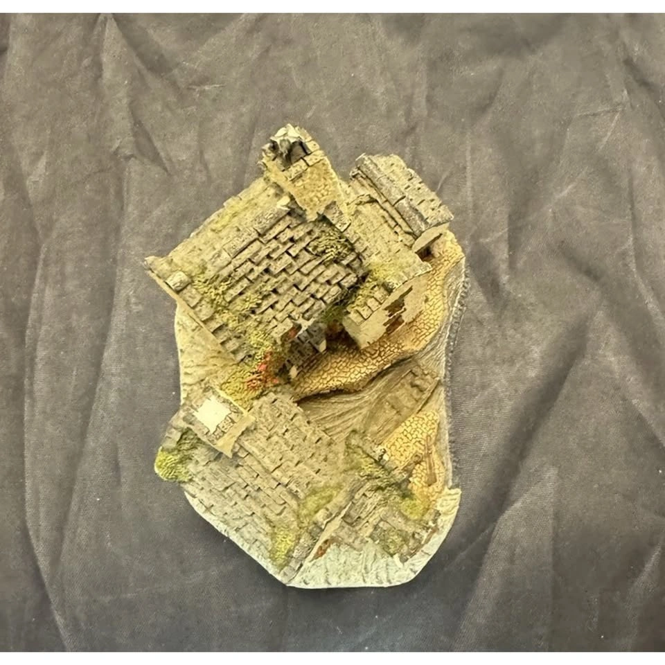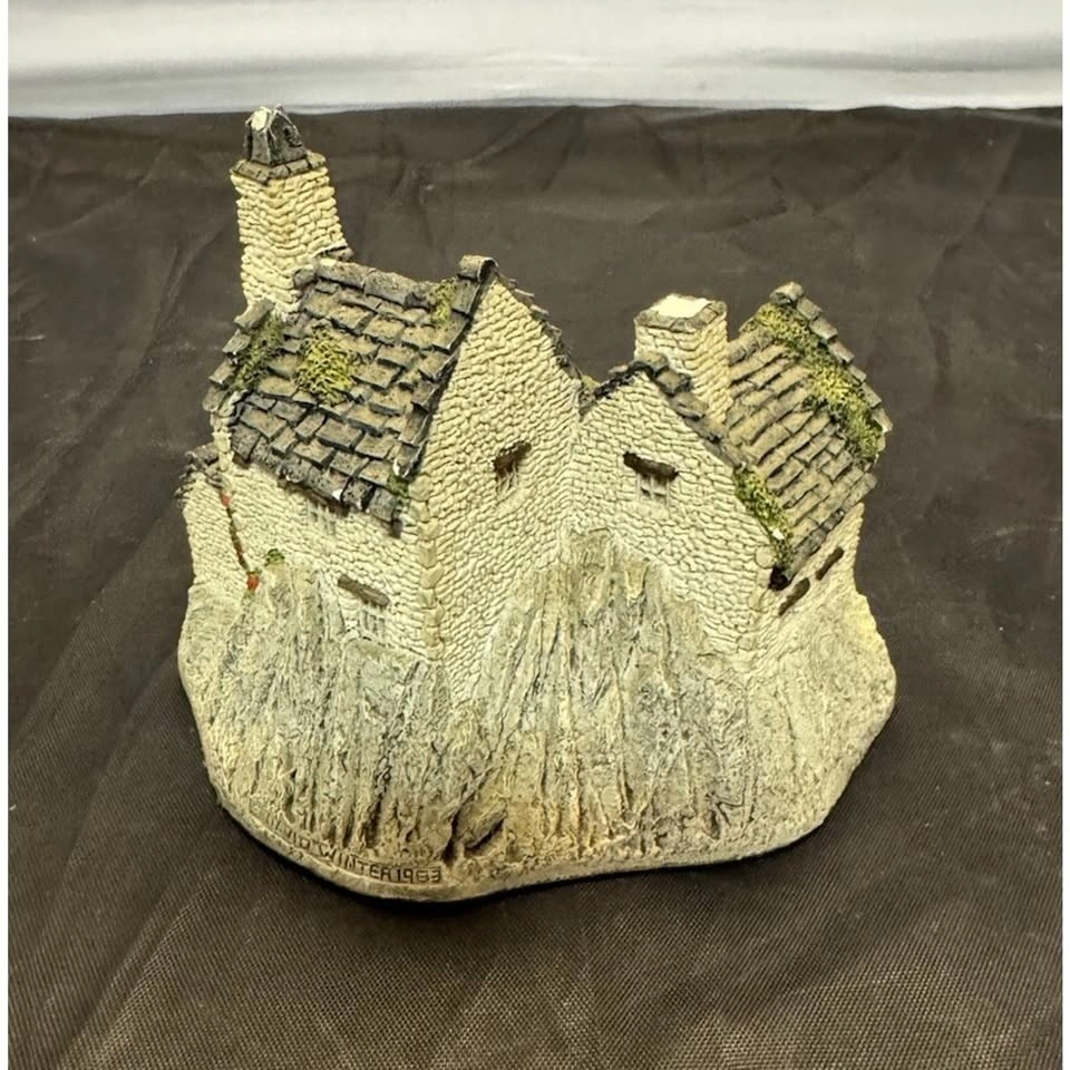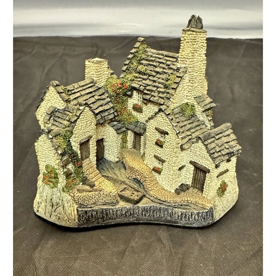 A beautifully crafted resin model depicting a Fisherman's Wharf scene from England. Hand painted with vibrant colors and intricate details, this miniature piece captures the essence of a seaside village with its charming design and authentic subject. Perfect for collectors or as a unique gift for any occasion, this delicate piece from 1983 by artist David Winter is sure to add a touch of nostalgia and English charm to any display or collection.