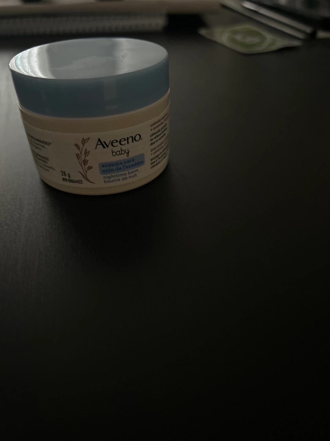 28g jar of Aveeno Baby Eczema Care Nighttime Balm. Clinically proven to relieve itch due to eczema. Colloidal oatmeal and ceramides.