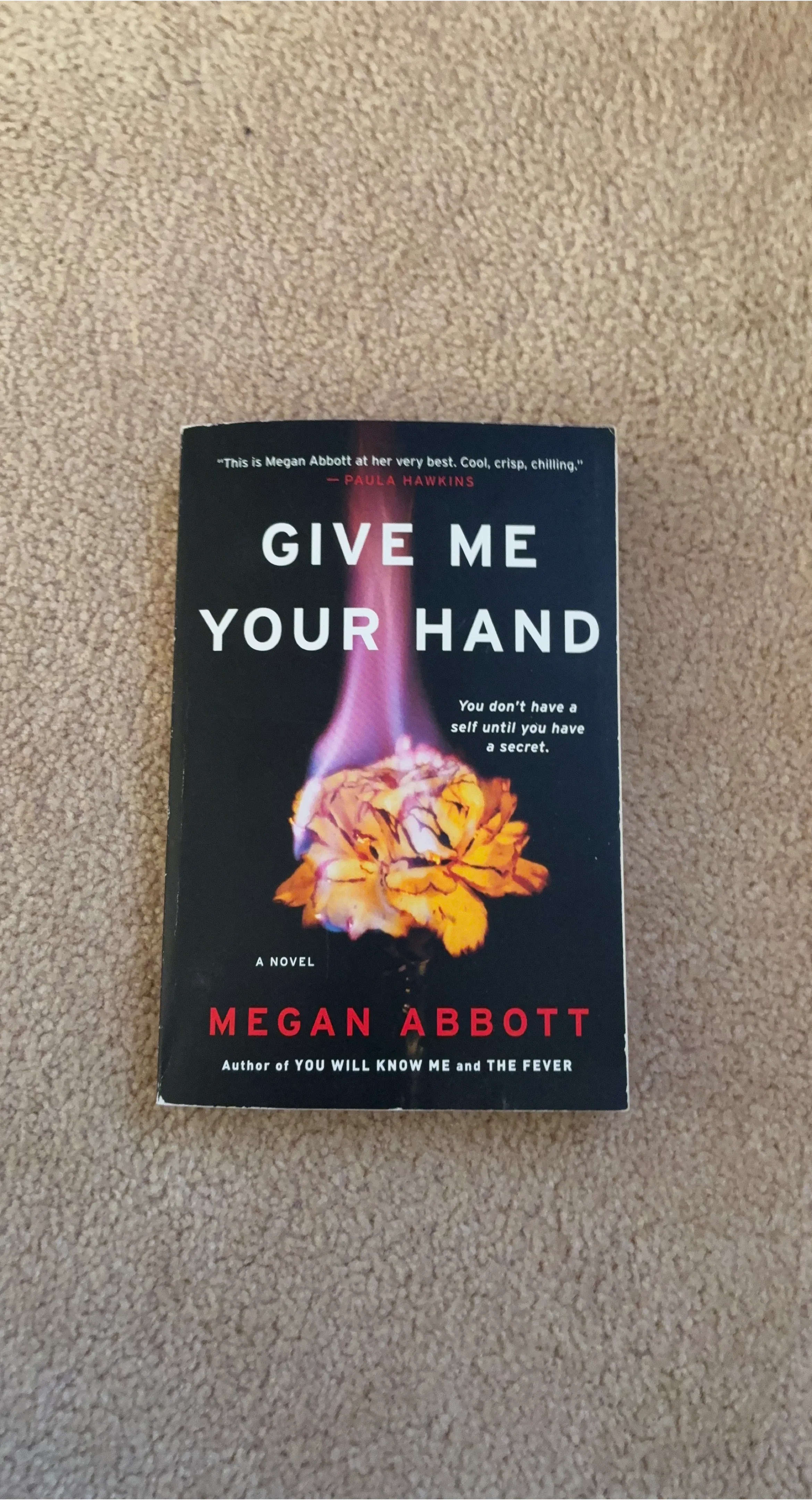 Selling the novel 'Give Me Your Hand' by Megan Abbott. It's a novel about secrets and self-discovery. Perfect for a cool, crisp, and chilling read!