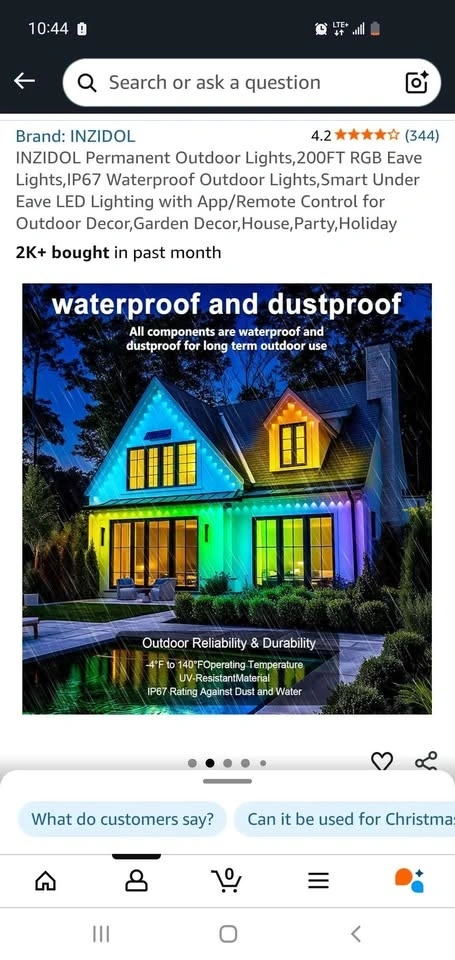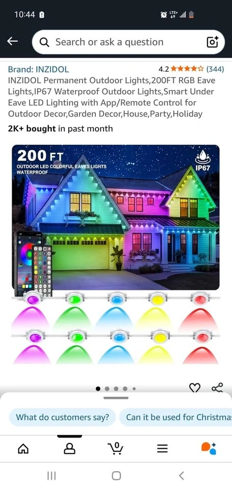 BNIB INZIDOL Permanent Outdoor Lights, 200FT RGB Eave Lights, IP67 Waterproof Outdoor Lights, Smart Under Eave LED Lighting with App/Remote Control for Outdoor Decor, Garden Decor, House, Party, Holiday. Lights only.