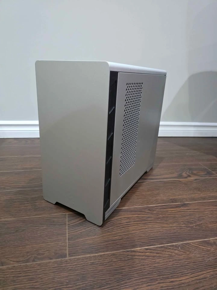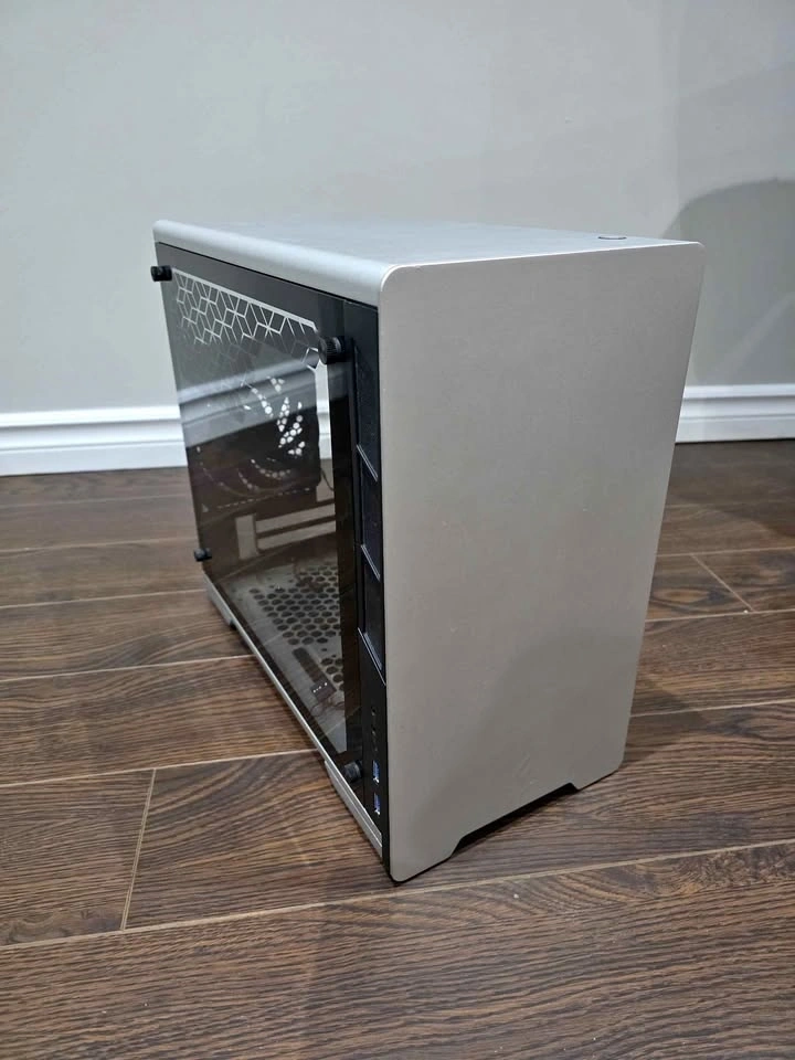 Sleek, compact, and perfect for a small gaming or workstation build. Comes with a 120mm fan included for better airflow. Features: Mini-ITX form factor, Silver sand-blasted aluminium panels with tempered glass side panel, Supports CPU coolers up to ~160 mm and GPUs up to ~345 mm, Clean cable management and modern design, Front I/O: USB 3.0, audio ports, RGB control button. Pickup only.