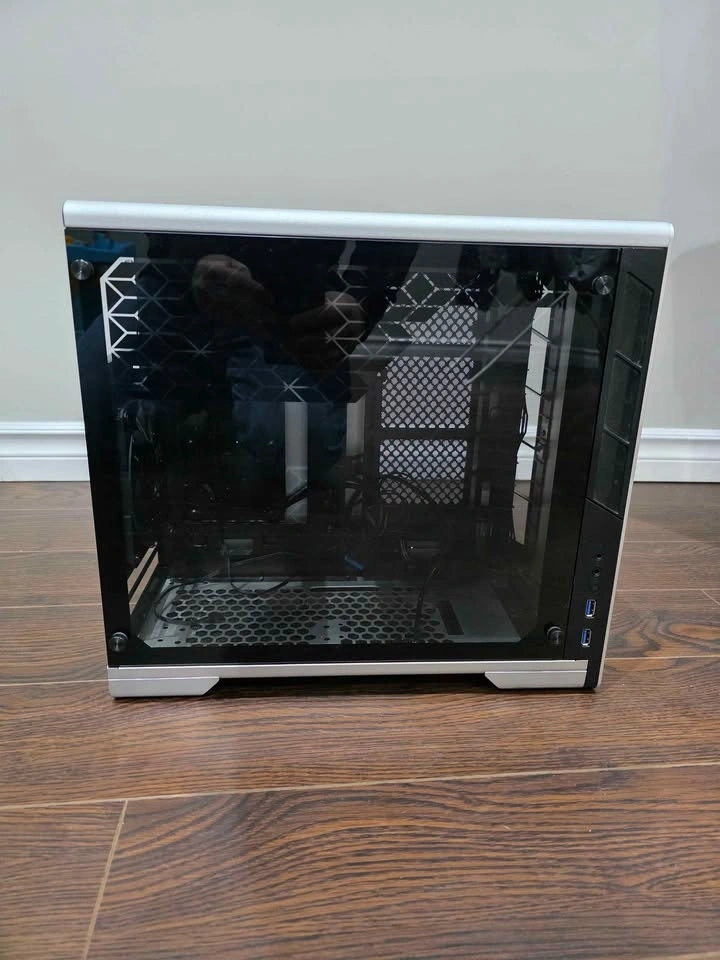 Sleek, compact, and perfect for a small gaming or workstation build. Comes with a 120mm fan included for better airflow. Features: Mini-ITX form factor, Silver sand-blasted aluminium panels with tempered glass side panel, Supports CPU coolers up to ~160 mm and GPUs up to ~345 mm, Clean cable management and modern design, Front I/O: USB 3.0, audio ports, RGB control button. Pickup only.