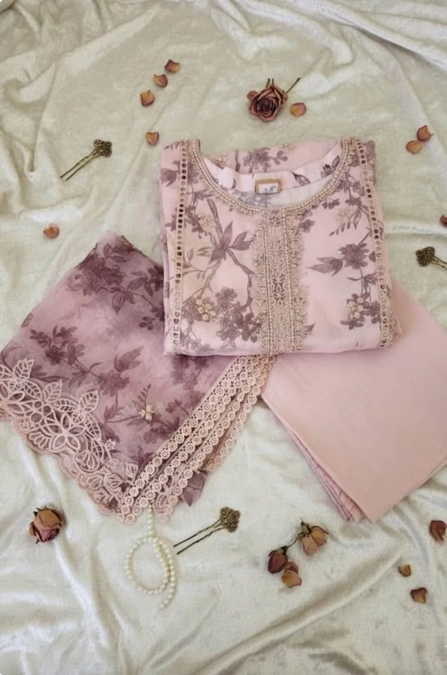 3pcs Stunning Pakistani Suit with Silk printed inner and soft Embroidered Organza shirt & Dupatta. Perfect for any occasion. Size : Large. price: $80