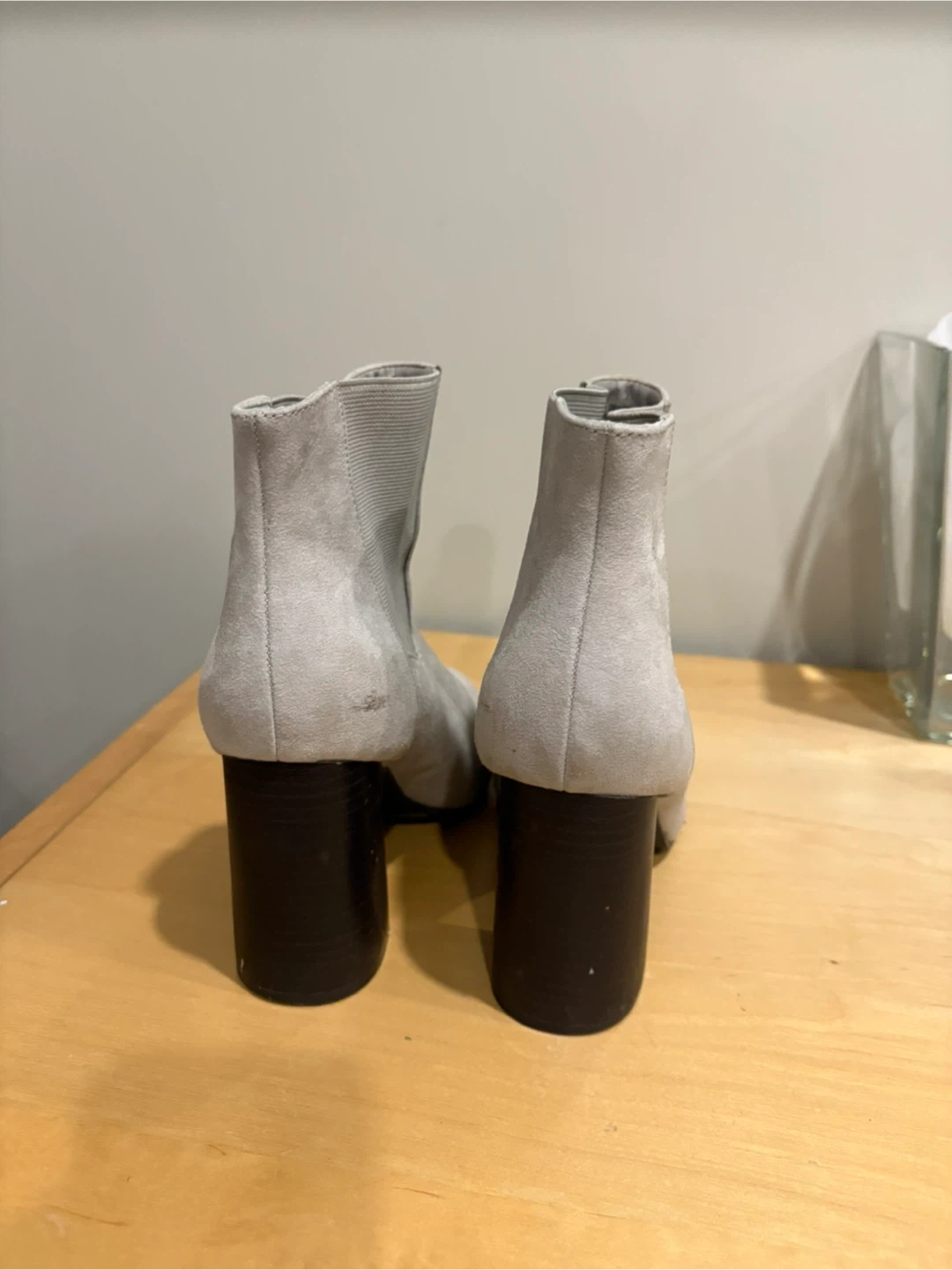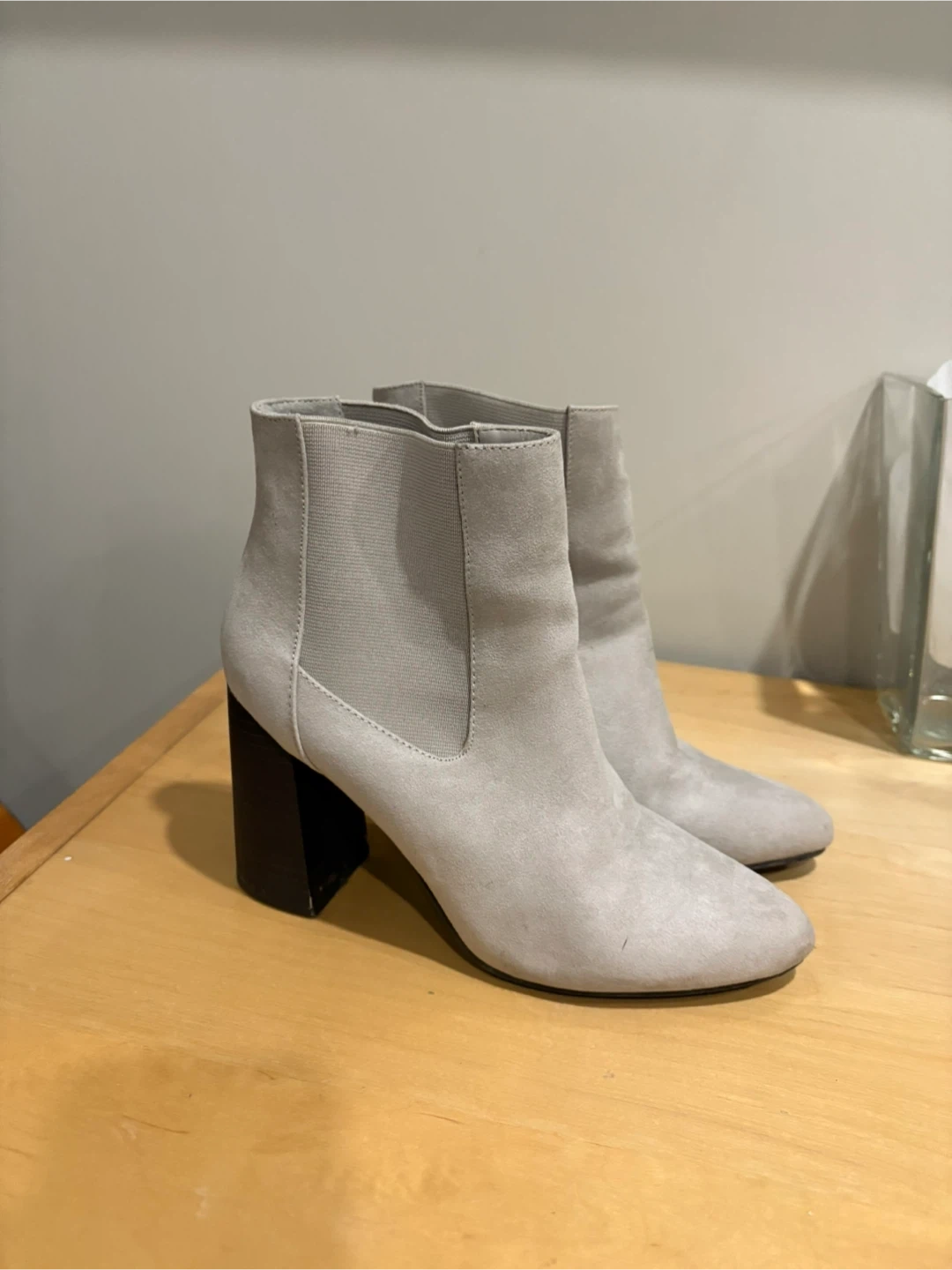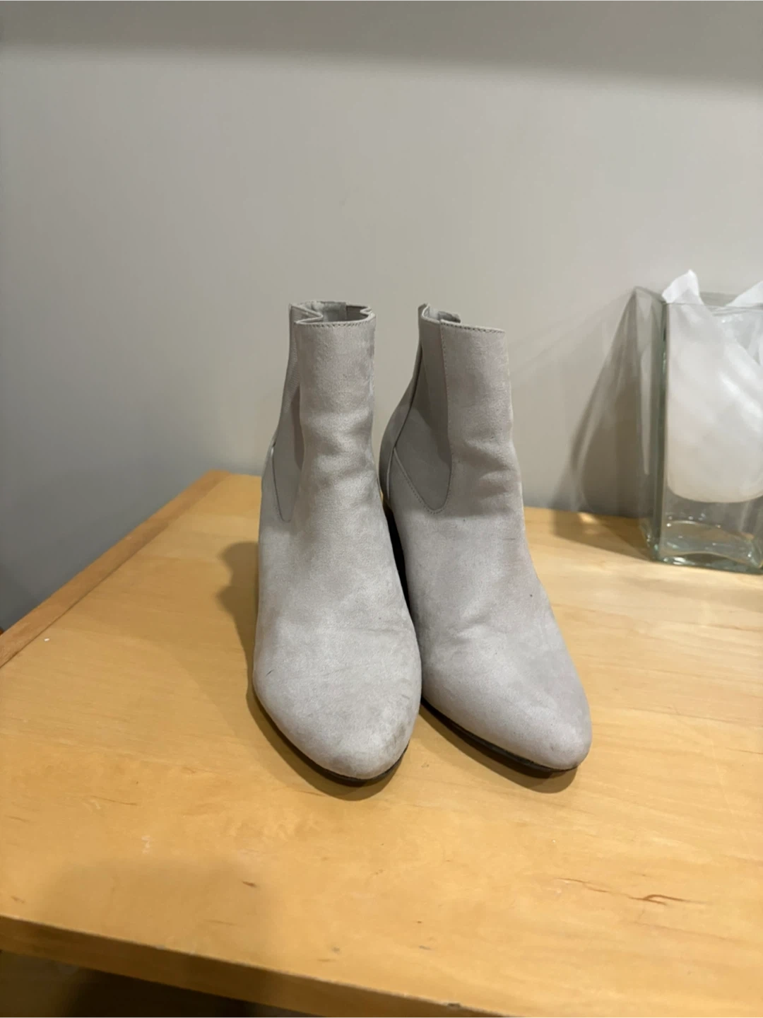 Suede ankle boots in a lovely cream colour. They are a size 7 and have a comfortable heel. Perfect for adding a bit of style to your outfits!
