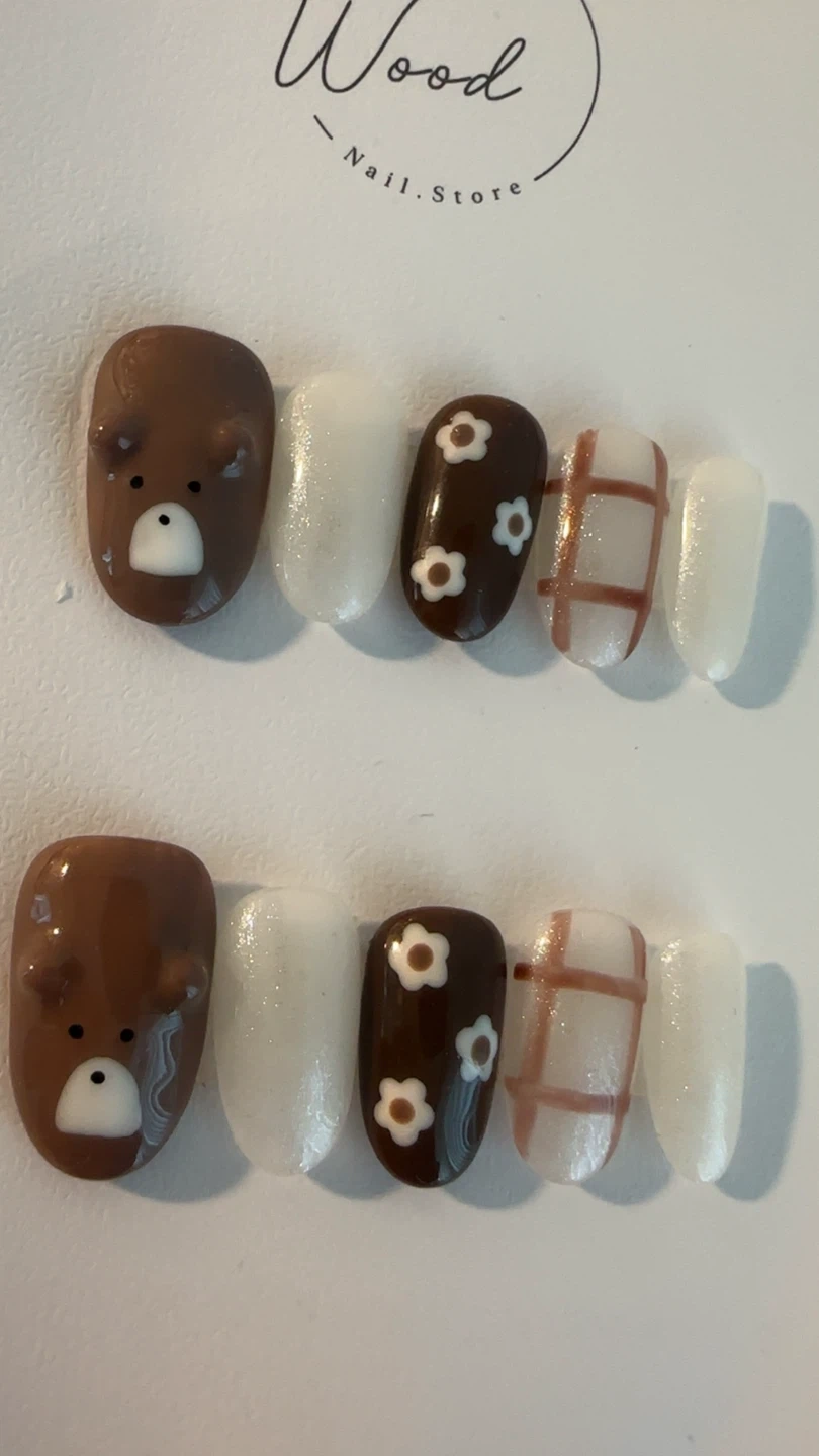 It features a lovely mocha brown palette with 3D teddy bears, hand-painted flowers, and classic plaid patterns.
