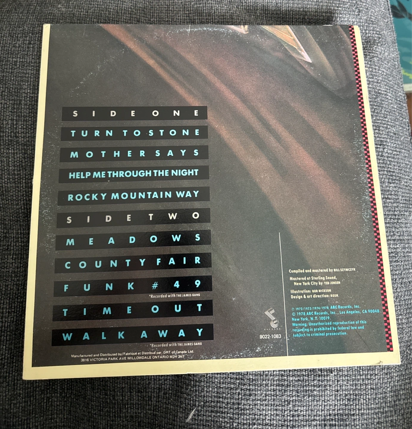 This is the vinyl record "The Best of Joe Walsh". It features songs like "Rocky Mountain Way" and "Funk #49". Recorded with the James Gang.