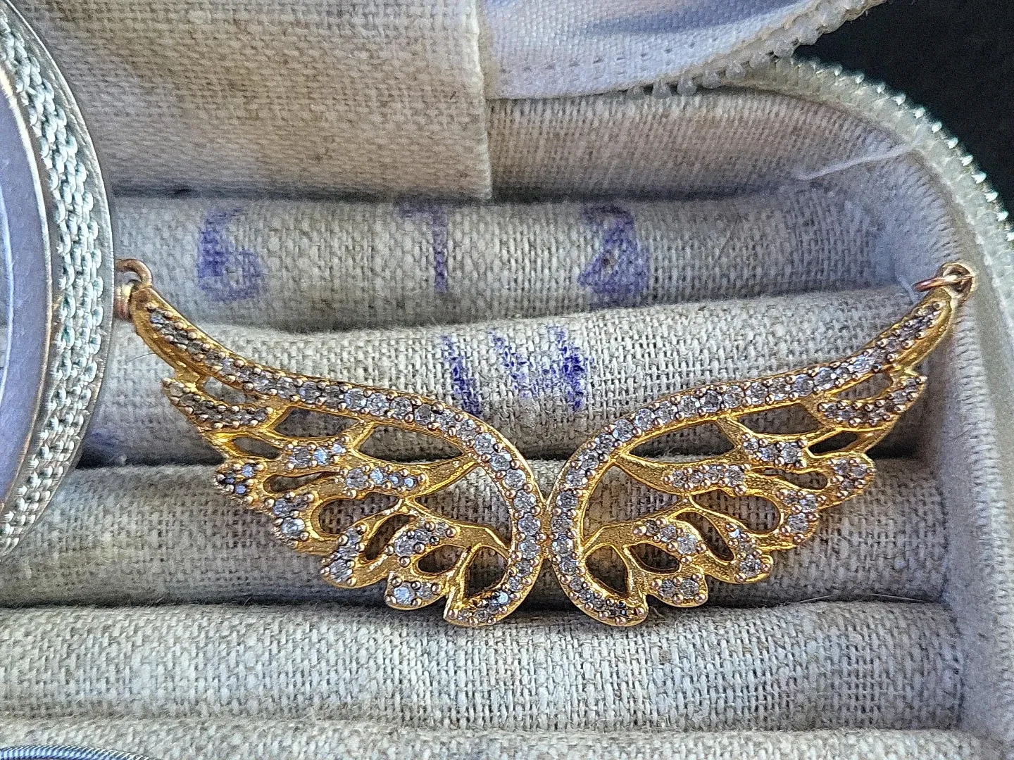 Gold Tone Angel Wing Pendant with Rhinestones