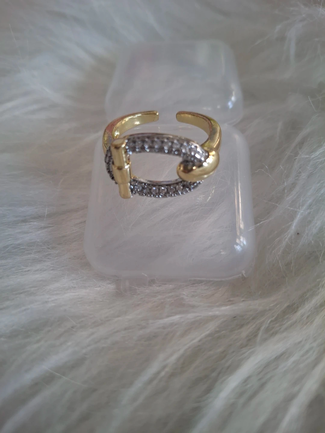 Gold Tone Ring with Pave Crystals