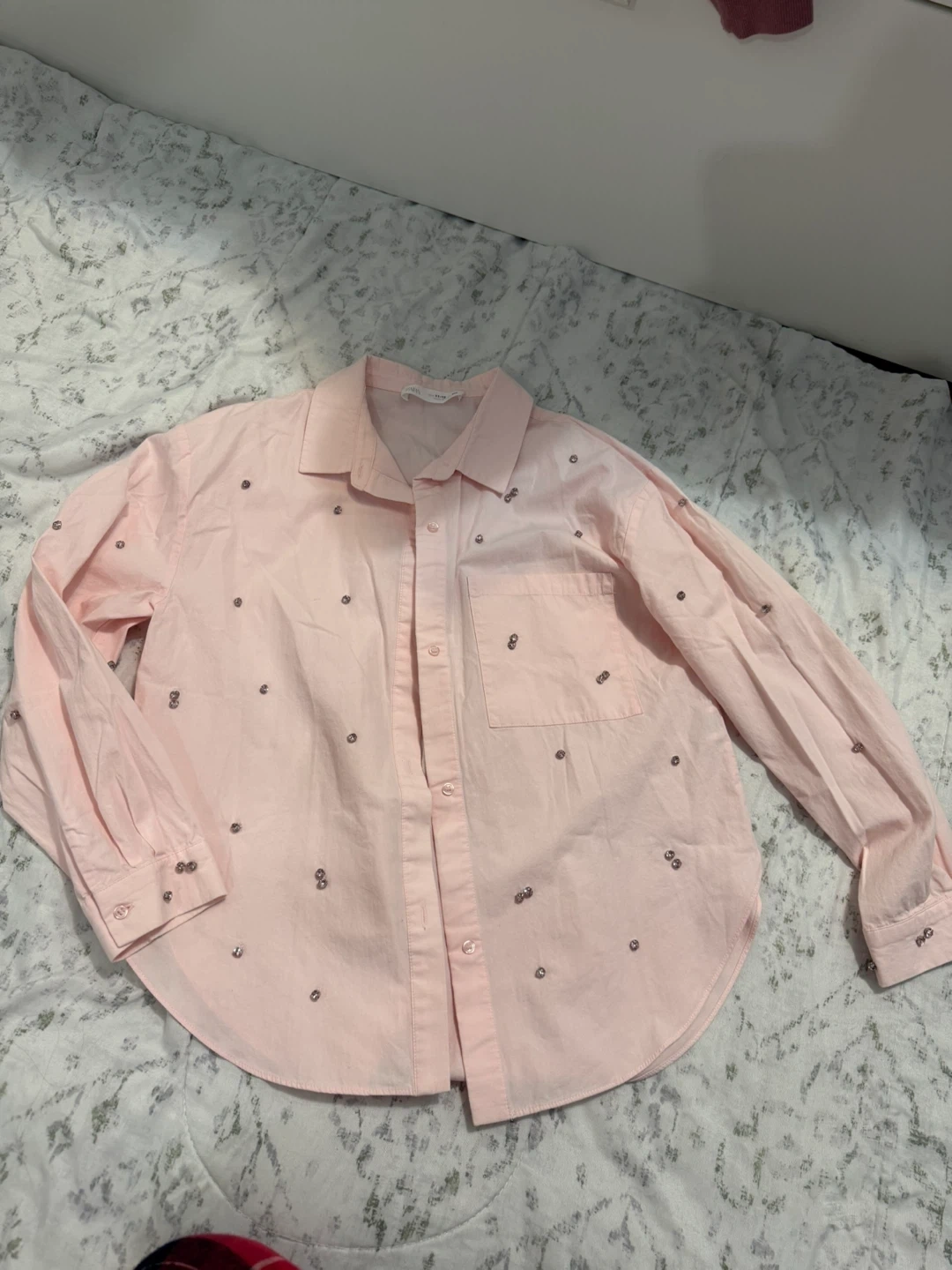 Bundle includes a variety of tops and outerwear items. Features graphic tees, a zip-up hoodie, a pink button-up shirt with embellishments, and a pink graphic sweatshirt. Styles include character graphics, text prints, and abstract patterns. All in good condition 🤗