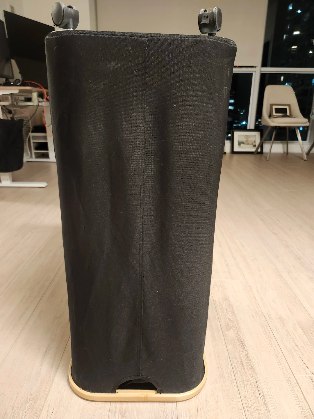 Black Laundry Hamper with Wooden Base and Wheels