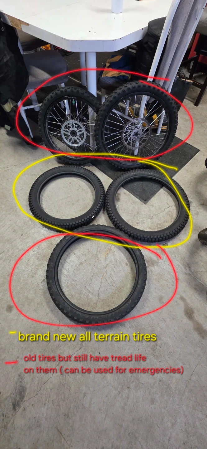 -supermoto tires and rims (still have the original set)-$600