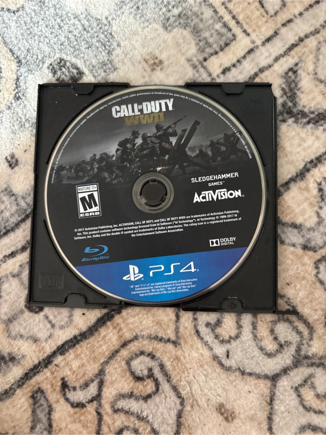 This is the Call of Duty: WWII game for PlayStation 4. It's a Blu-ray disc with a Mature 17+ rating from the ESRB. Supports Dolby Digital.
