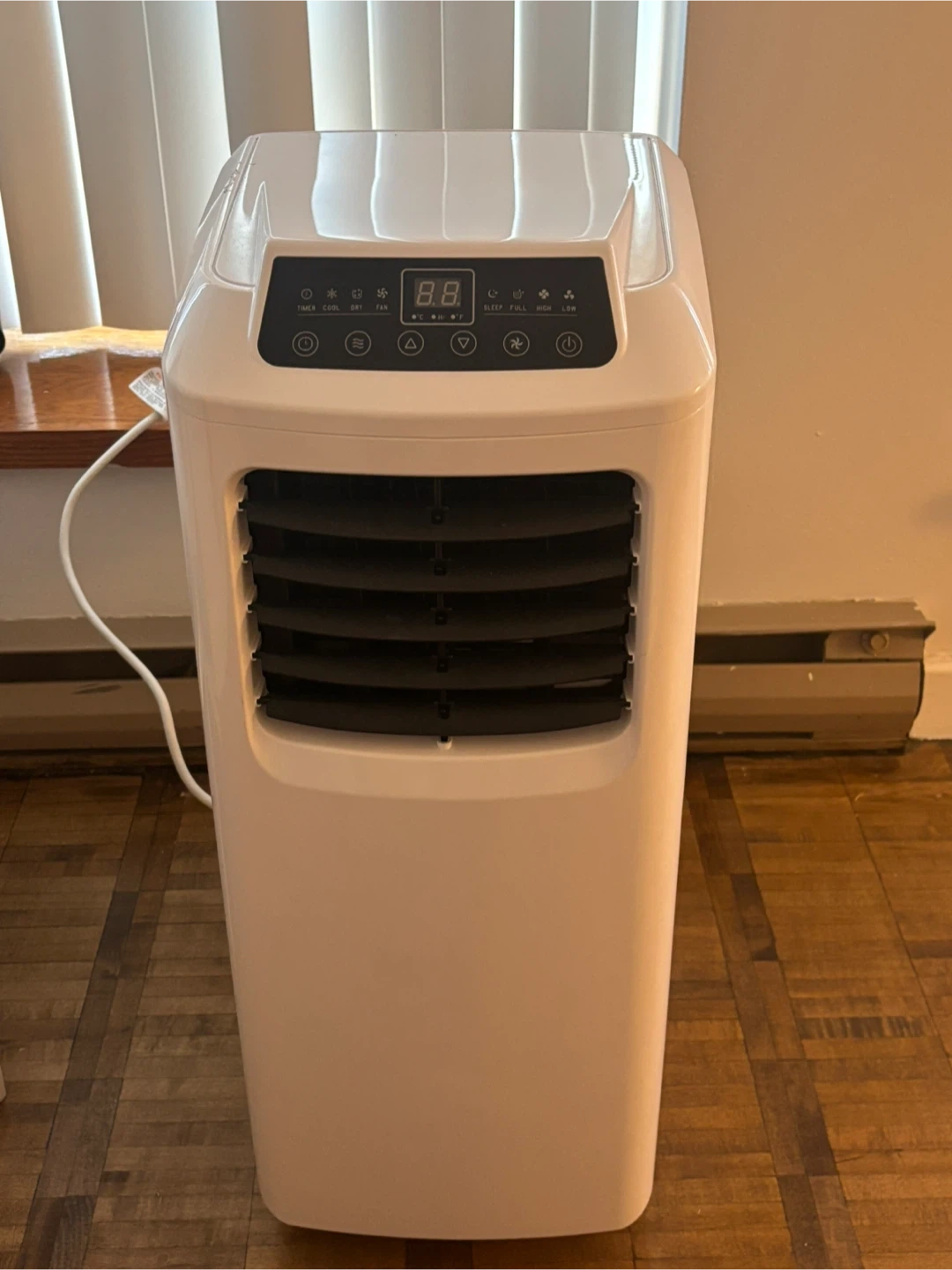 Selling a Costway portable air conditioner, perfect for cooling rooms up to 230 sq ft. Dehumidifying and fanning modes, sleep mode, and time settings. The model number is EP24618US. Dimensions are 300*756*352mm. Get ready for summer!