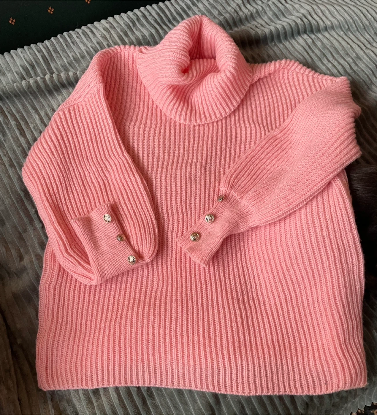 🏆Pink Turtleneck Sweater with Button Cuffs