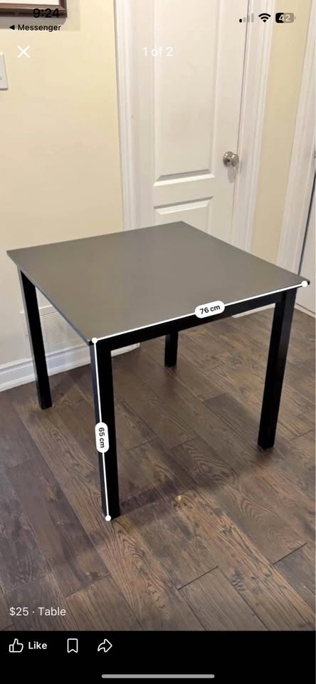 Sturdy black table in excellent condition — clean, well-maintained, and almost new. Perfect for a study area or small dining space. Already disassembled for easy transport. Ready for pickup.