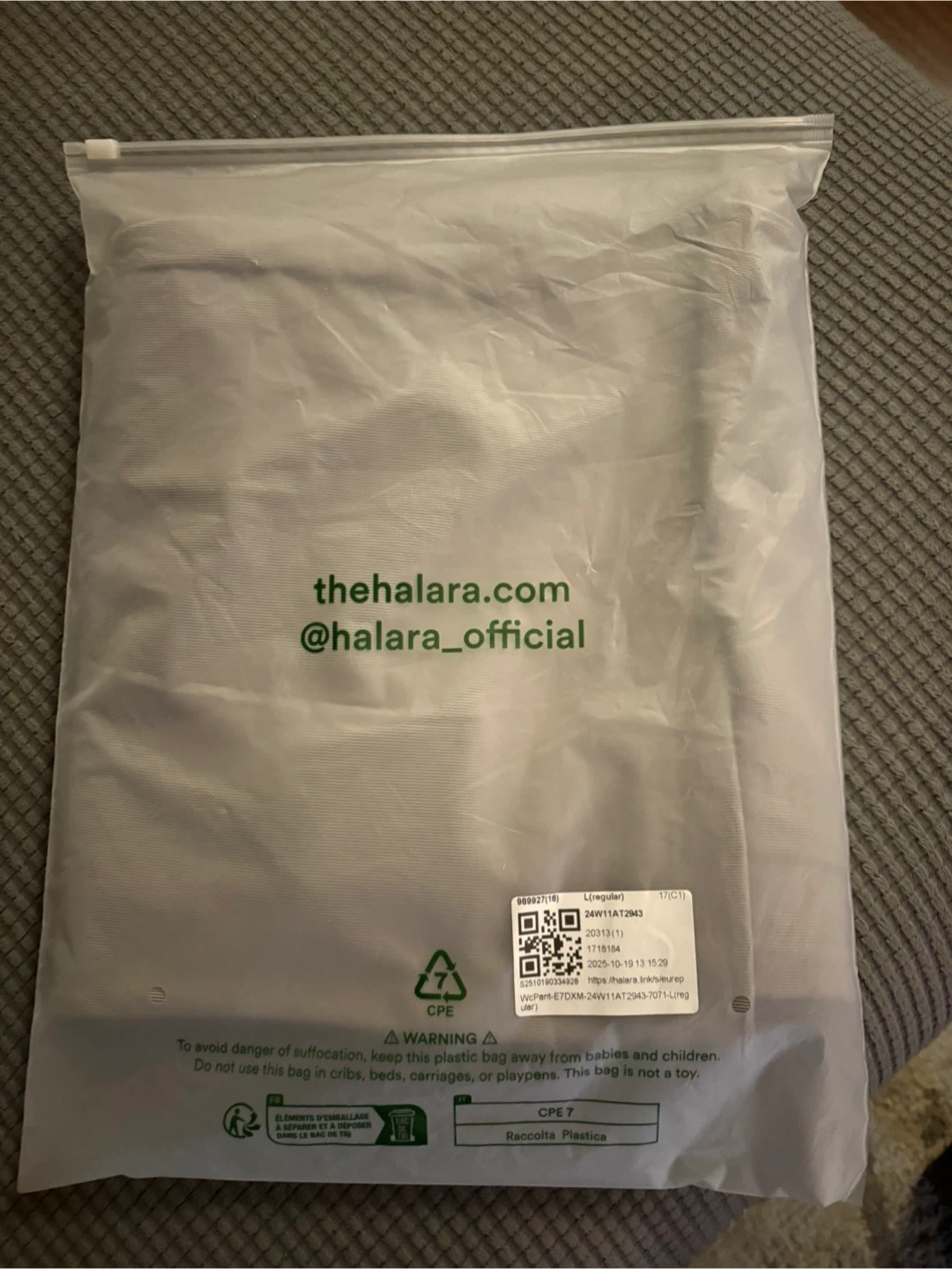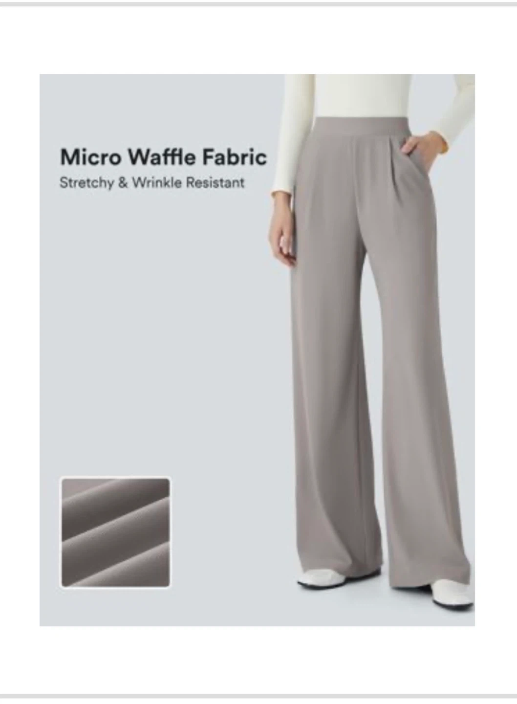 These Halara micro waffle fabric pants are stretchy and wrinkle resistant. They are a size large. The manufacturing date is 2025 October 13.