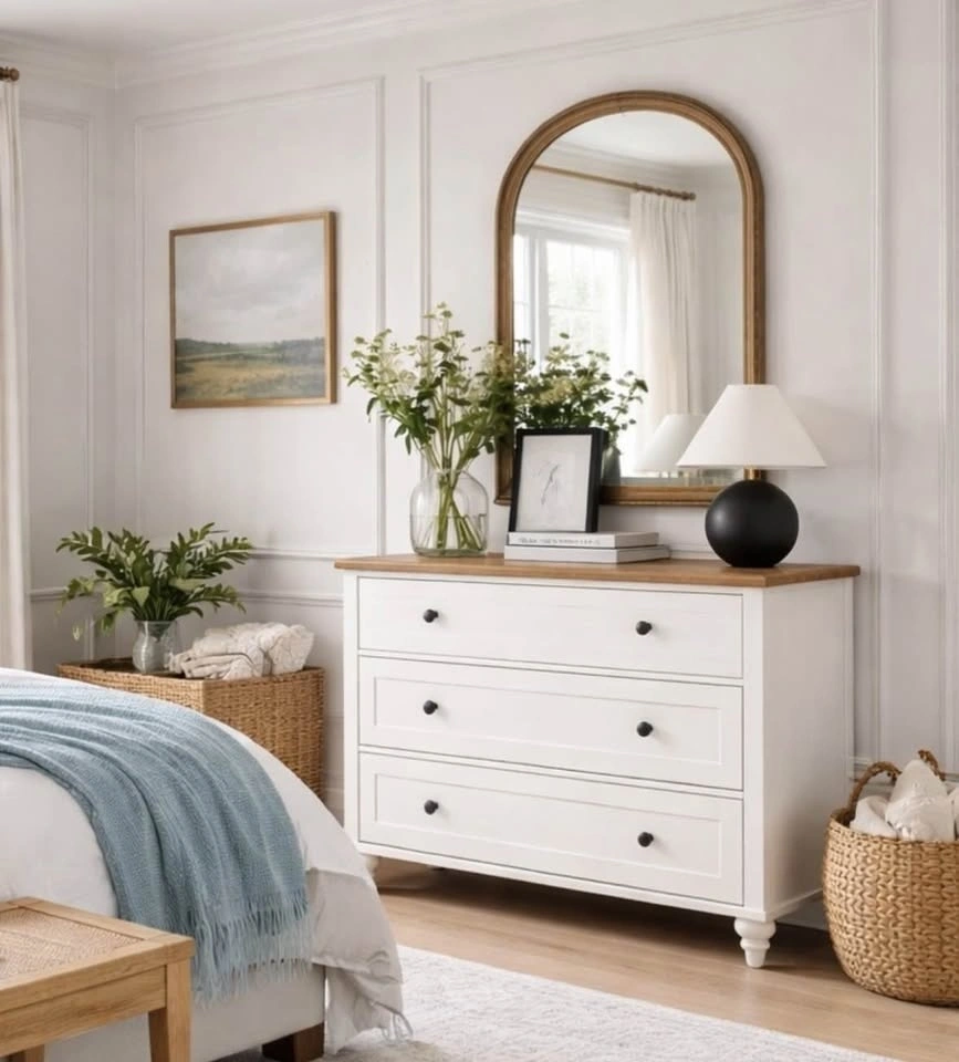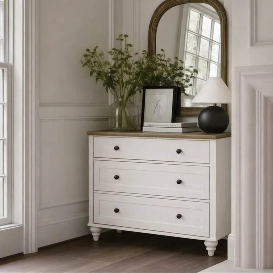 Versatile three-drawer dresser/cabinet. Brand new in box. Dimensions: 15.71″ D × 33.90″ W × 30.91″ H. Material: Engineered wood with solid wood legs. Features 3 drawers. Colour is rustic off-white with an oak top (please see photos for exact colour). Pickup can be coordinated in North York, West Scarborough, or Downtown Toronto. Let me know if you're interested!