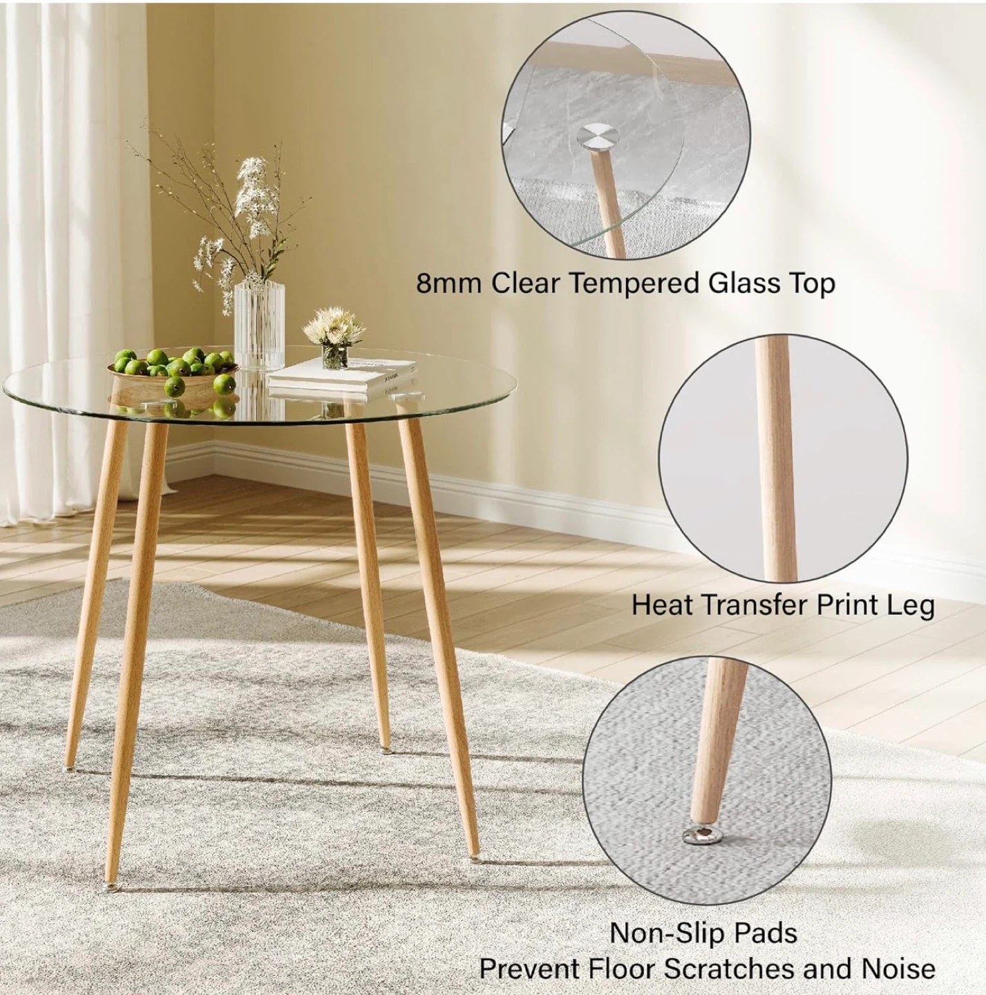 Glass Top Round Dining Table with 2-4 Chairs