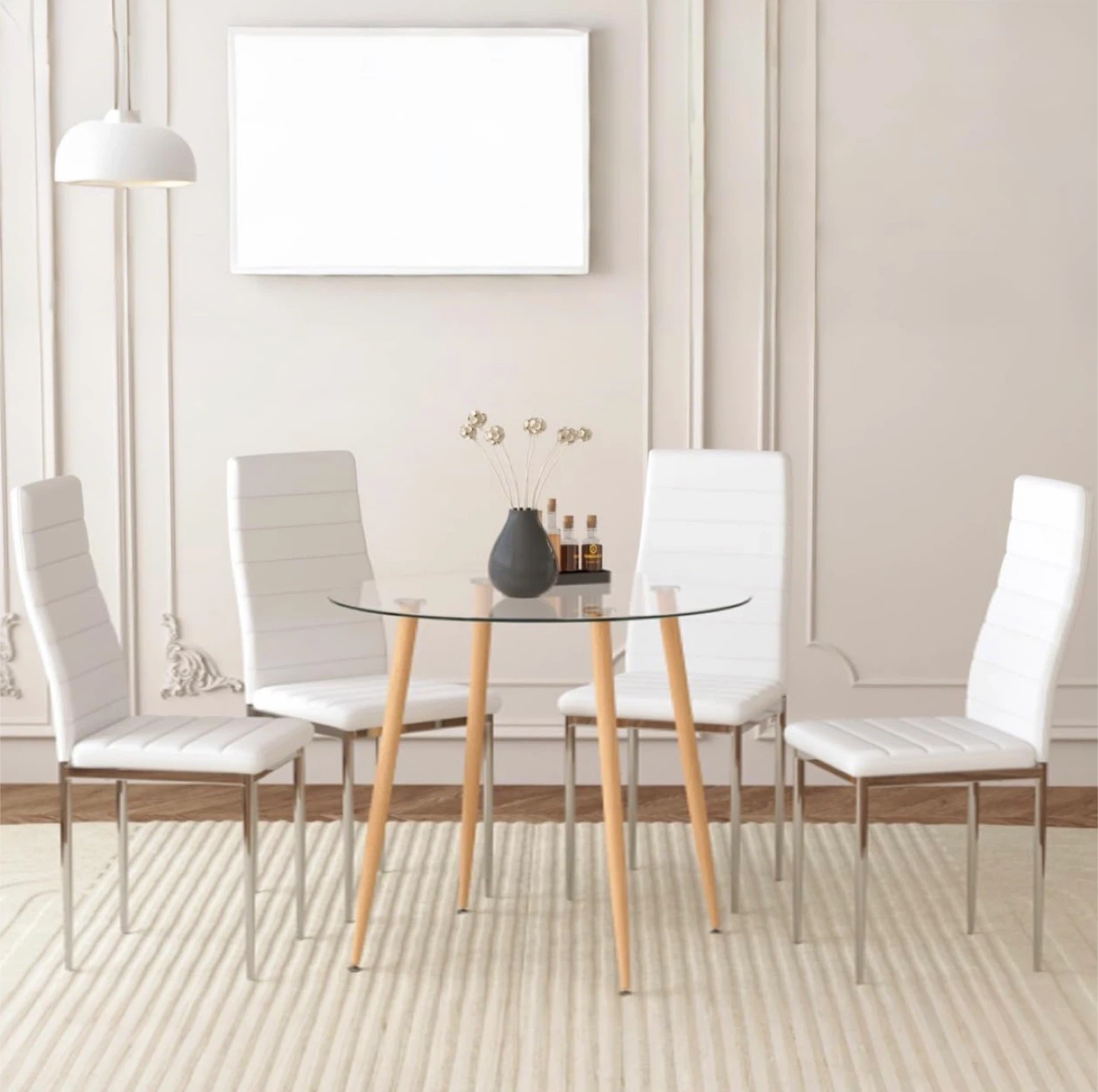 Glass Top Round Dining Table with 2-4 Chairs