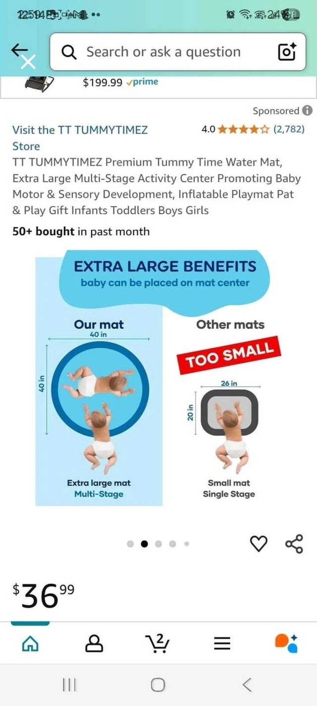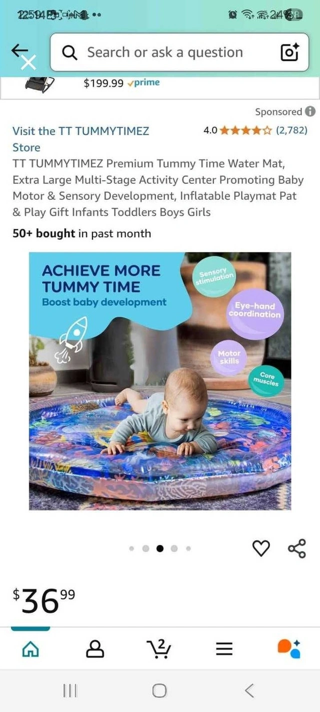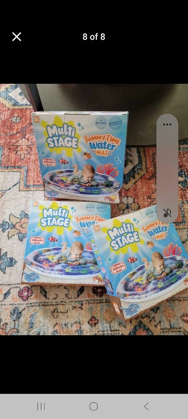 This TT Tummytimez premium tummy time water mat is an extra-large, multi-stage activity centre promoting baby motor and sensory development. It is an inflatable playmat for infants, toddlers, boys, and girls. It has award winner status for best baby toy 2024. * Sensory stimulation * Motor skills * Eye-hand coordination Looking for a way to make tummy time more engaging for your little one? This water mat is the perfect solution! It provides a stimulating and fun environment for your baby to develop essential motor skills and coordination, all while keeping them entertained with colourful floating toys. If the ad is up, it's available! Cash accepted.