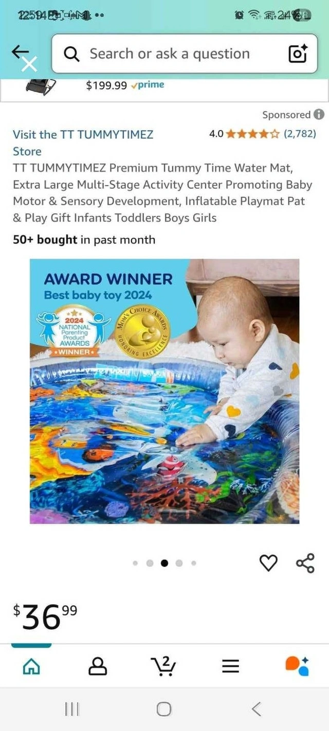 This TT Tummytimez premium tummy time water mat is an extra-large, multi-stage activity centre promoting baby motor and sensory development. It is an inflatable playmat for infants, toddlers, boys, and girls. It has award winner status for best baby toy 2024. * Sensory stimulation * Motor skills * Eye-hand coordination Looking for a way to make tummy time more engaging for your little one? This water mat is the perfect solution! It provides a stimulating and fun environment for your baby to develop essential motor skills and coordination, all while keeping them entertained with colourful floating toys. If the ad is up, it's available! Cash accepted.