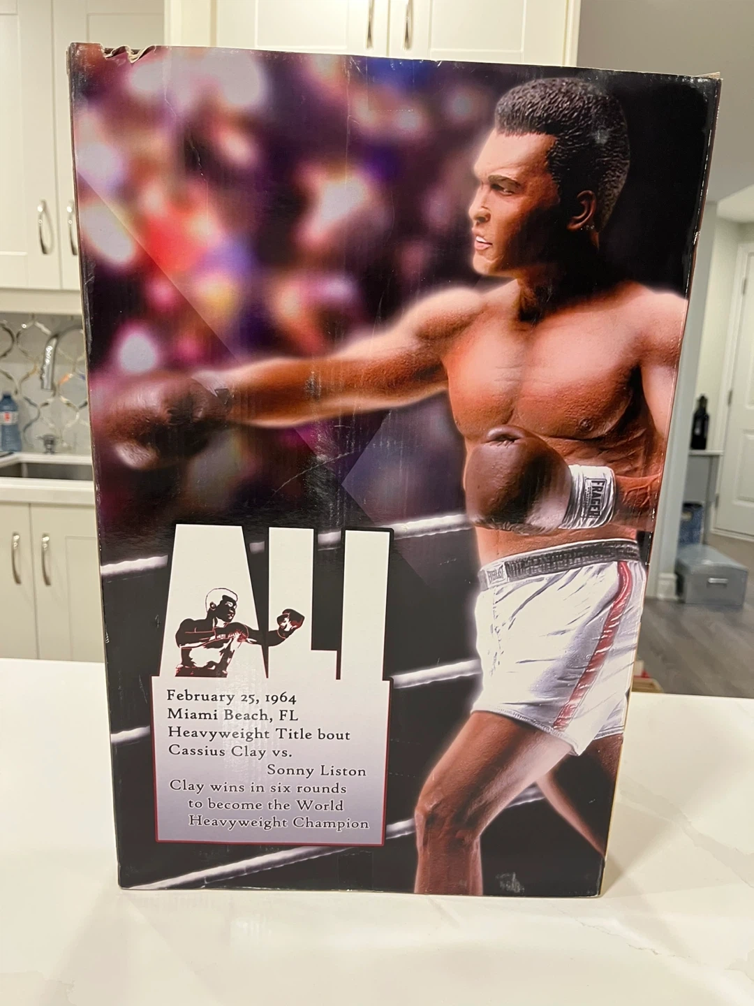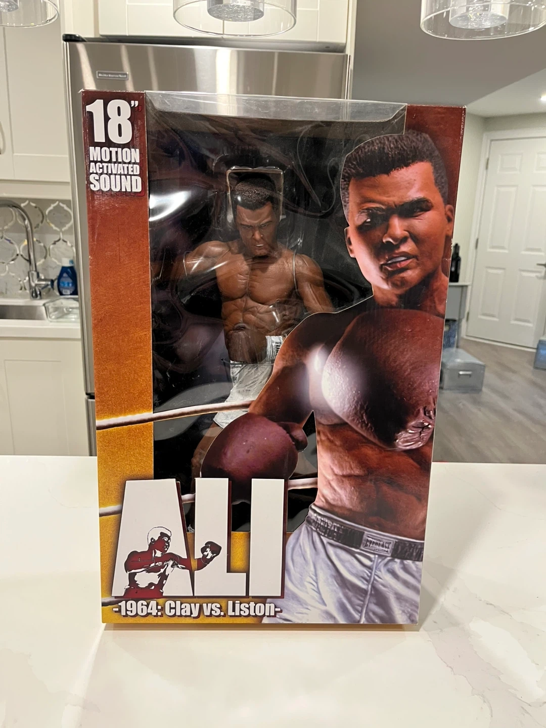 Selling a Muhammad Ali 18-inch figure with motion-activated sound! The figure commemorates the 1964 Clay vs Liston fight. It's still in the original box , brand new never opened or removed from box