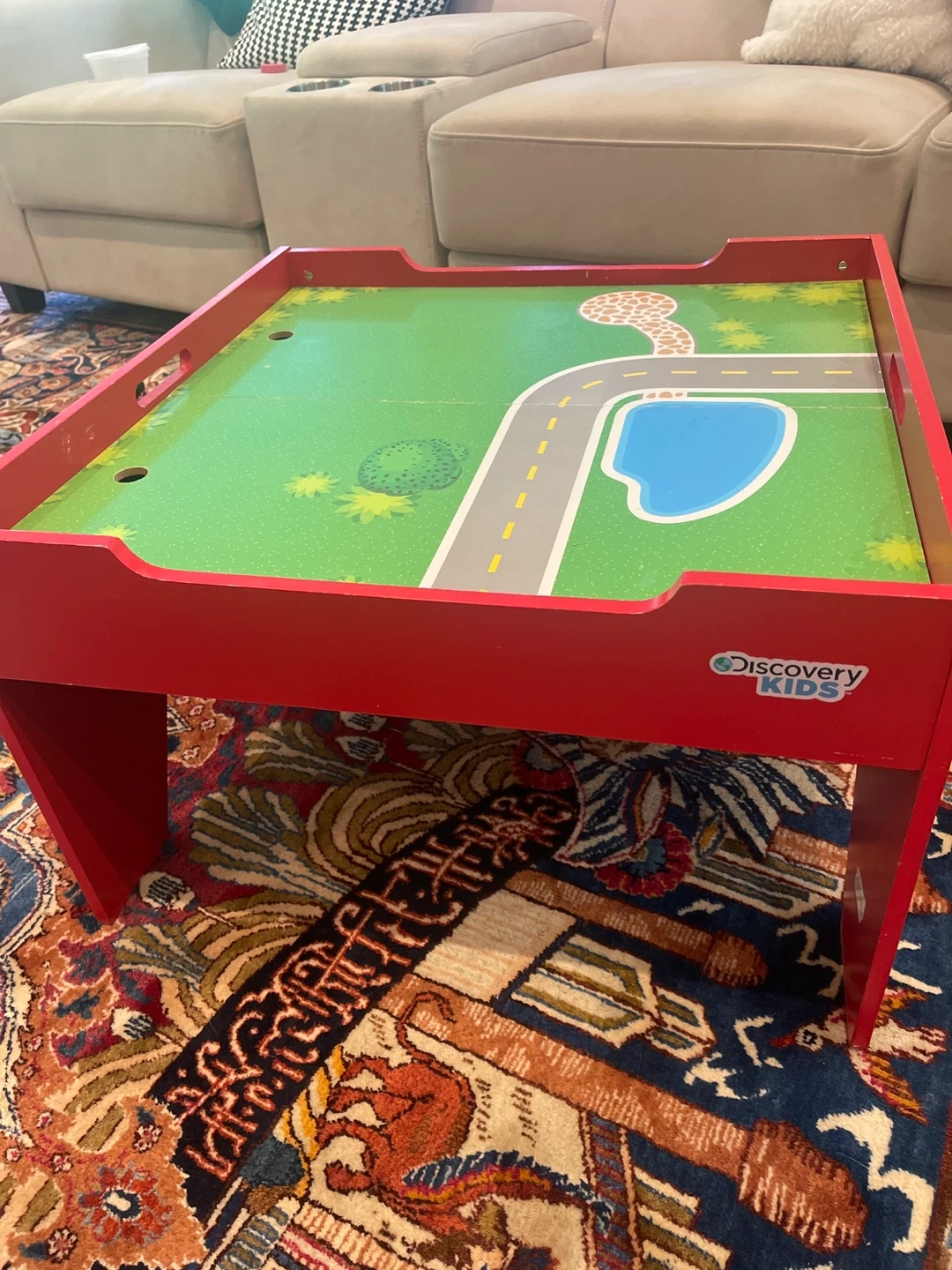 Selling a Discovery Kids activity table! It's red and has a fun road and park design on top. Great for kids' playtime and activities