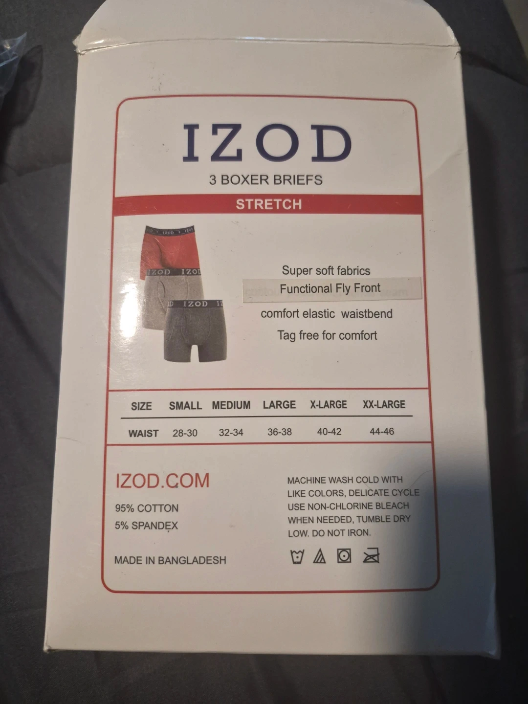 Selling a brand new pack of IZOD boxer briefs! These are size large and come with 3 pairs in the pack. They're made from a super soft fabric with a functional fly front and comfortable elastic waistband. Tag free for extra comfort! Made of 95% cotton and 5% spandex