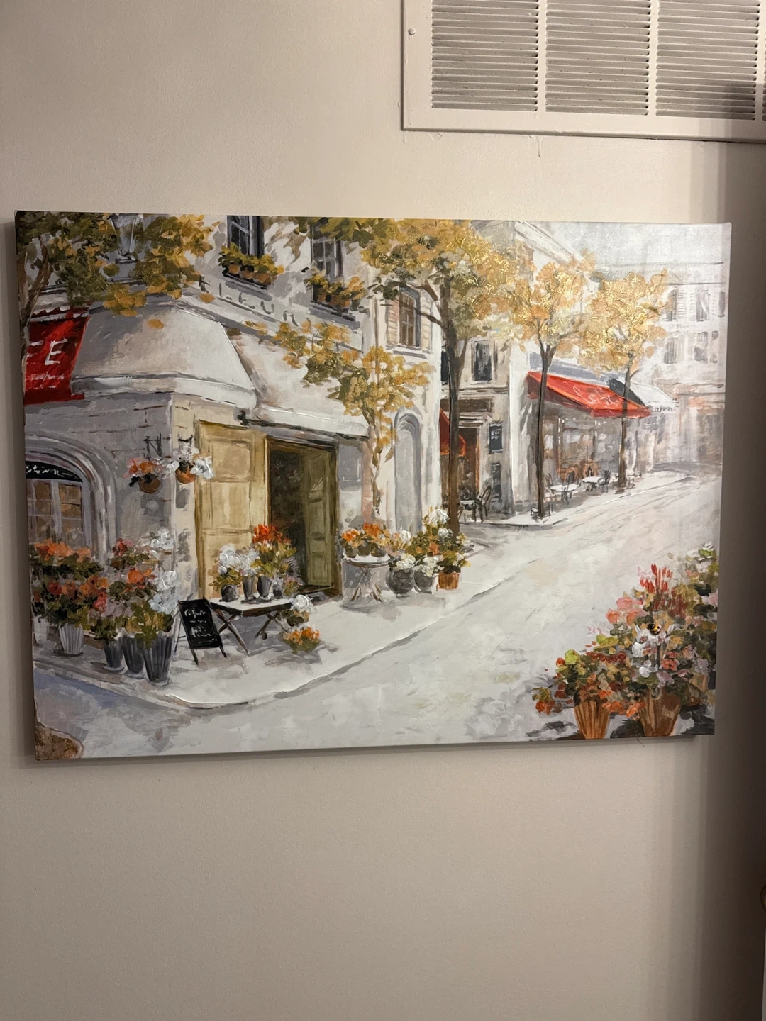 Canvas Wall Art - Parisian Street Scene with Flowers