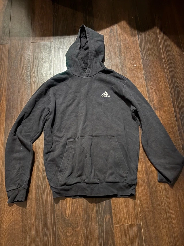 This is an Adidas hoodie, perfect for staying warm and stylish! It is in used condition, as shown in the images. Perfect for everyday wear or for hitting the gym. Brand: Adidas, Size: M, Colour: Black. If the ad is up, it’s still available!