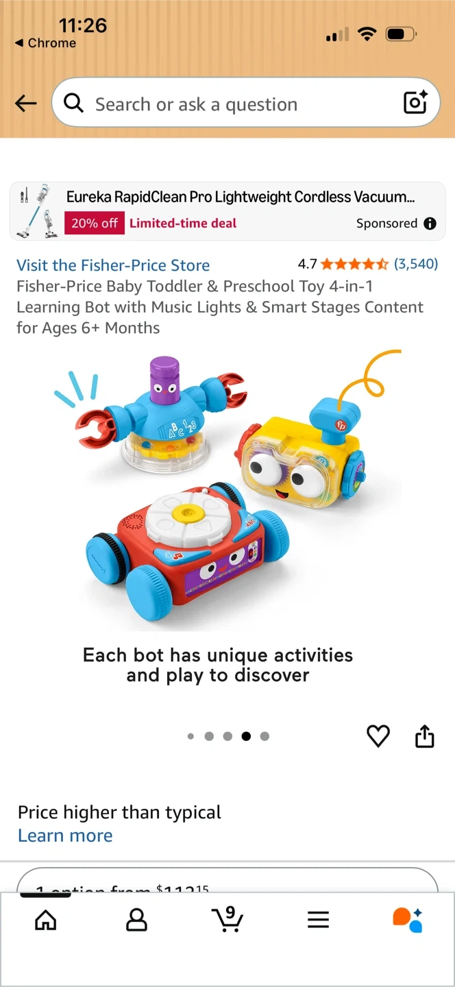 This Fisher-Price 4-in-1 Learning Bot is designed for ages 6+ months. It has music, lights, and smart stages content. Each bot has unique activities and play to discover!