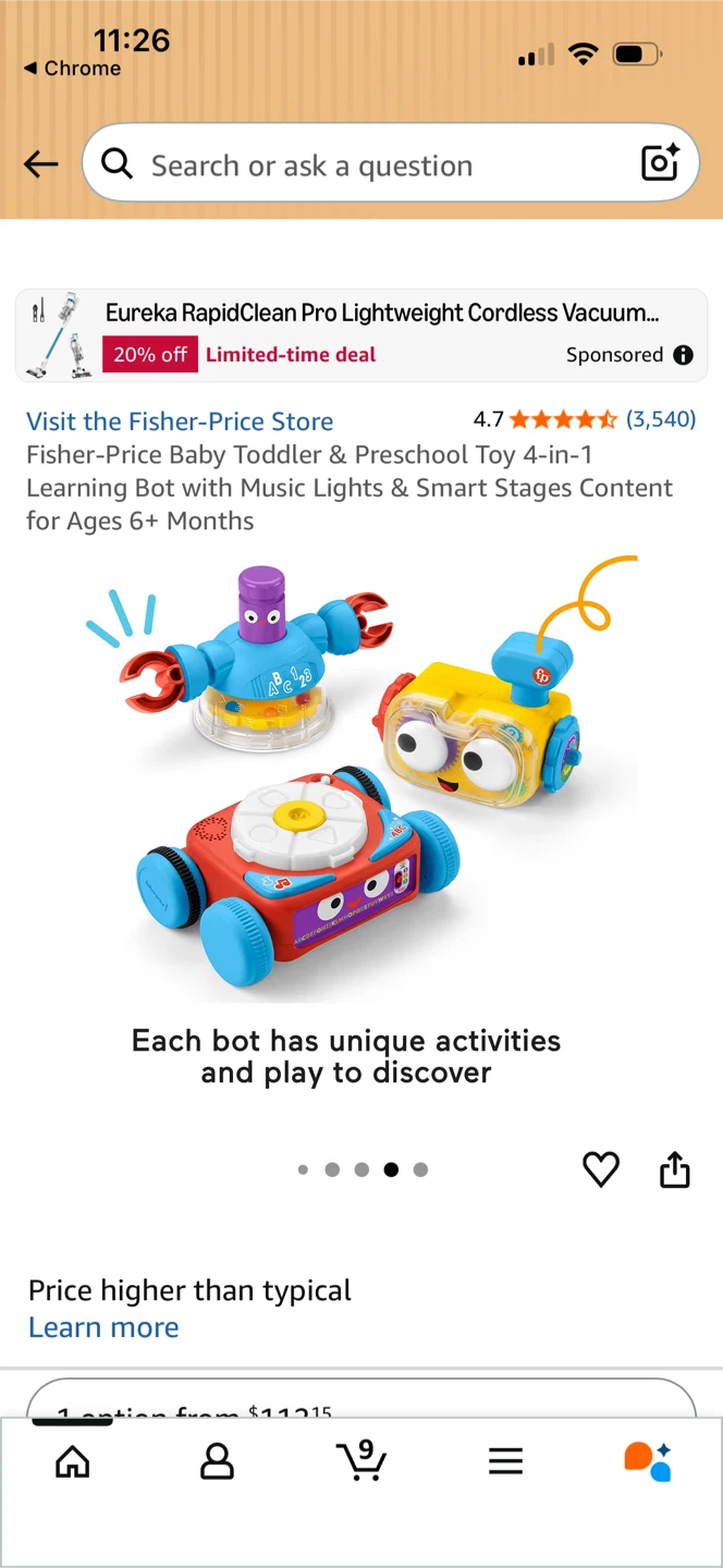 This Fisher-Price 4-in-1 Learning Bot is designed for ages 6+ months. It has music, lights, and smart stages content. Each bot has unique activities and play to discover!
