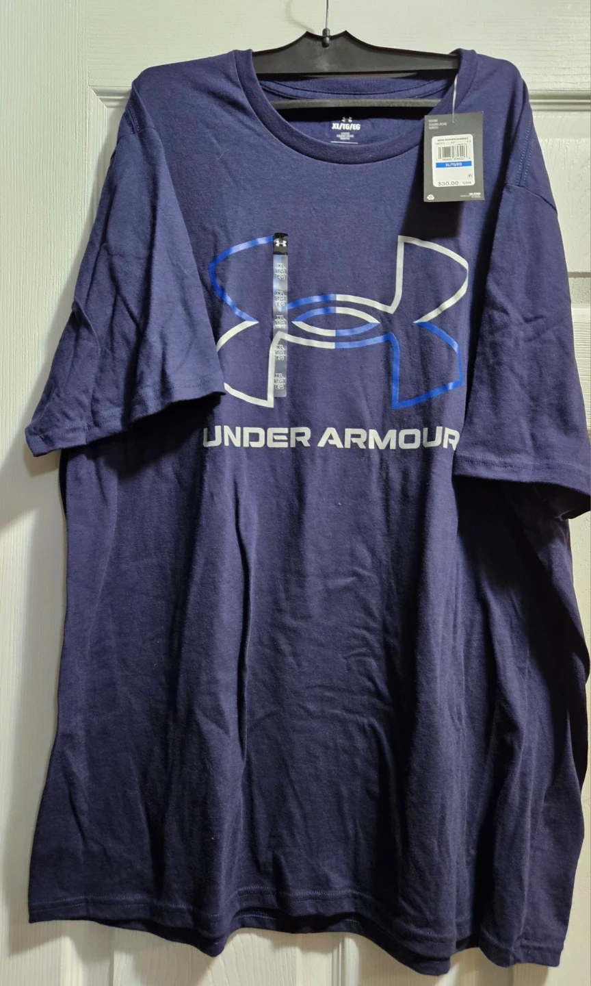 I'm selling a brand new Under Armour T-shirt, still with the tags on! It's a size XL and a nice dark blue colour. The original price on the tag says $30.00. Perfect for workouts or casual wear!