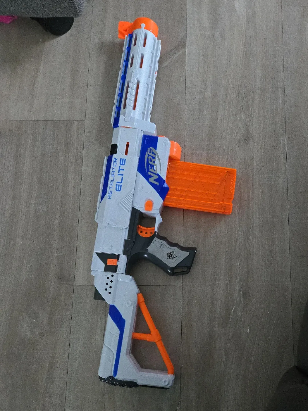 Buy & SellNerf Retaliator Elite Toy BlasterNerf Retaliator Elite Toy Blaster$10This is a white and blue Nerf Retaliator Elite blaster. It comes with an orange clip. It's great for kids who love active play!WHERE TO MEETNations Fresh Foods • Vaughan StoreView MapSELLERMariaConcord120 reviews0 chats·0 favorites·20 viewsSEND CHAT TO SELLERHi Maria! I’m interested in your listing.Hi Maria! I’m interested in your listing.Get the Karrot app to chatSign In to chat