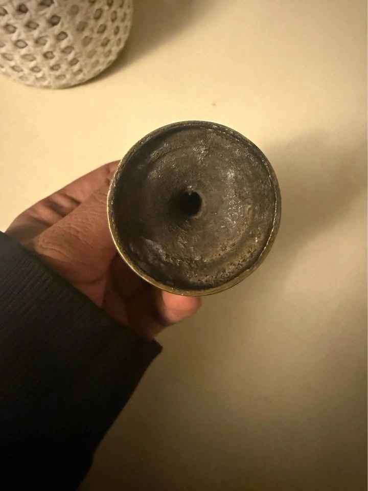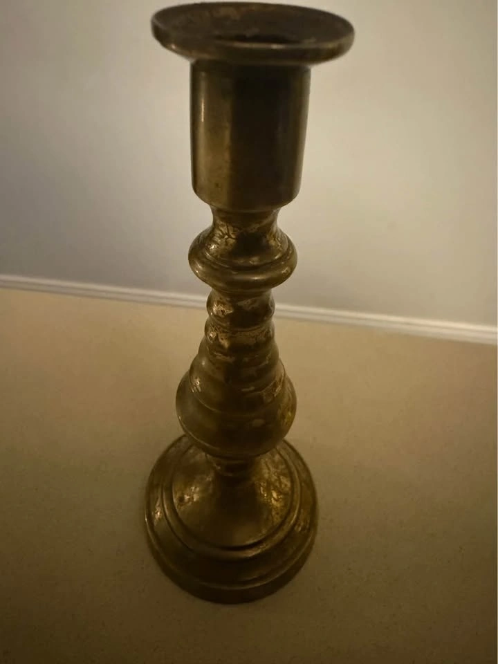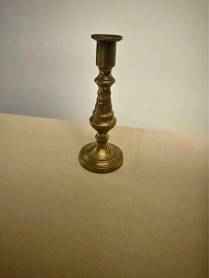 Vintage brass candle stick holder for smaller candle. Opening is 0.5 inch wide.