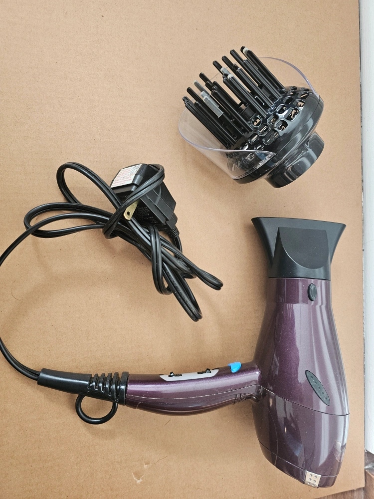 Conair hair dryer, includes a new diffuser attachment (never been used) and power cord. Good condition, minimal wear.