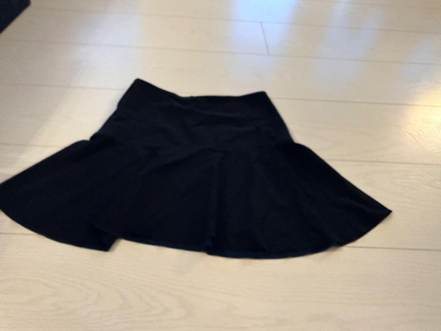 This is a black Lululemon skirt. It features a zipper closure on the back. It's great for casual wear or activities.