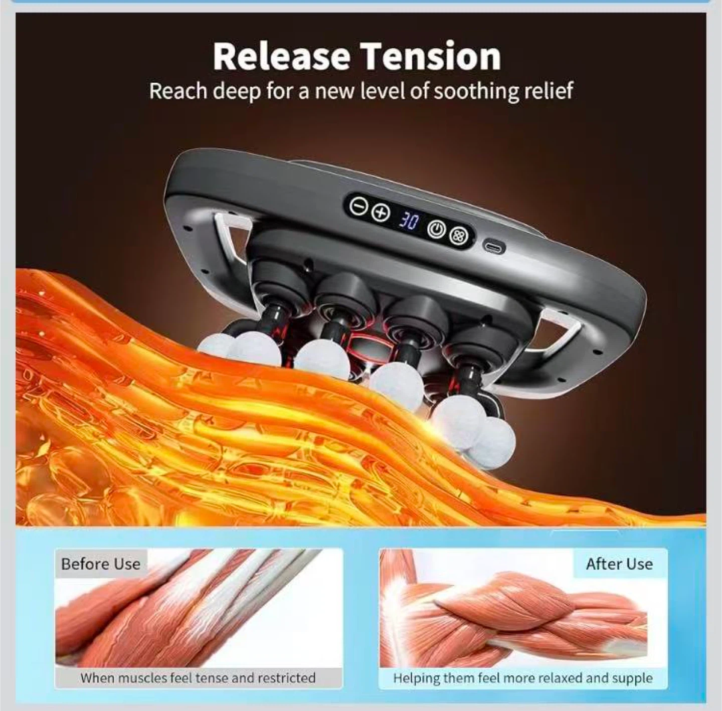 20-Head Massage Gun, 30 Intensity Levels 3 Modes, Deep Tissue Massager with 50KG Force & Noise-Free Motor for Neck Back Legs Shoulders, Portable for Full Body Muscle Recovery