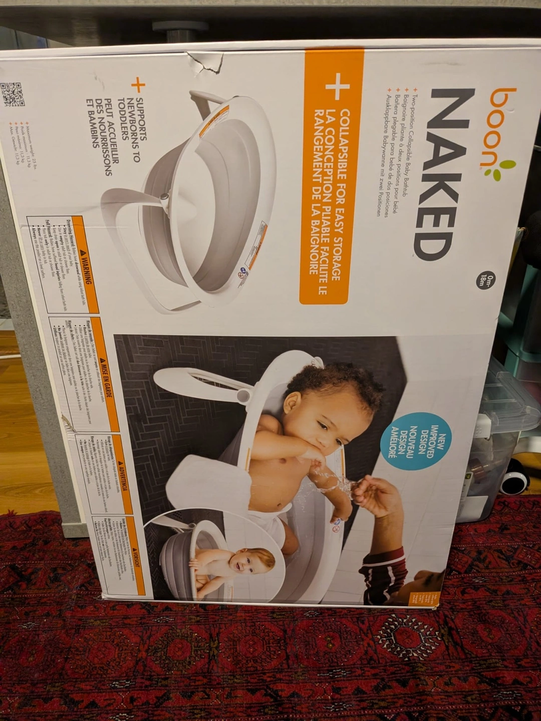 Selling a Boon Naked collapsible baby bathtub, perfect for newborns to toddlers (0-18 months). It's designed for easy storage and has a two-position recline. It supports newborns to toddlers and has a new improved design! The box is included