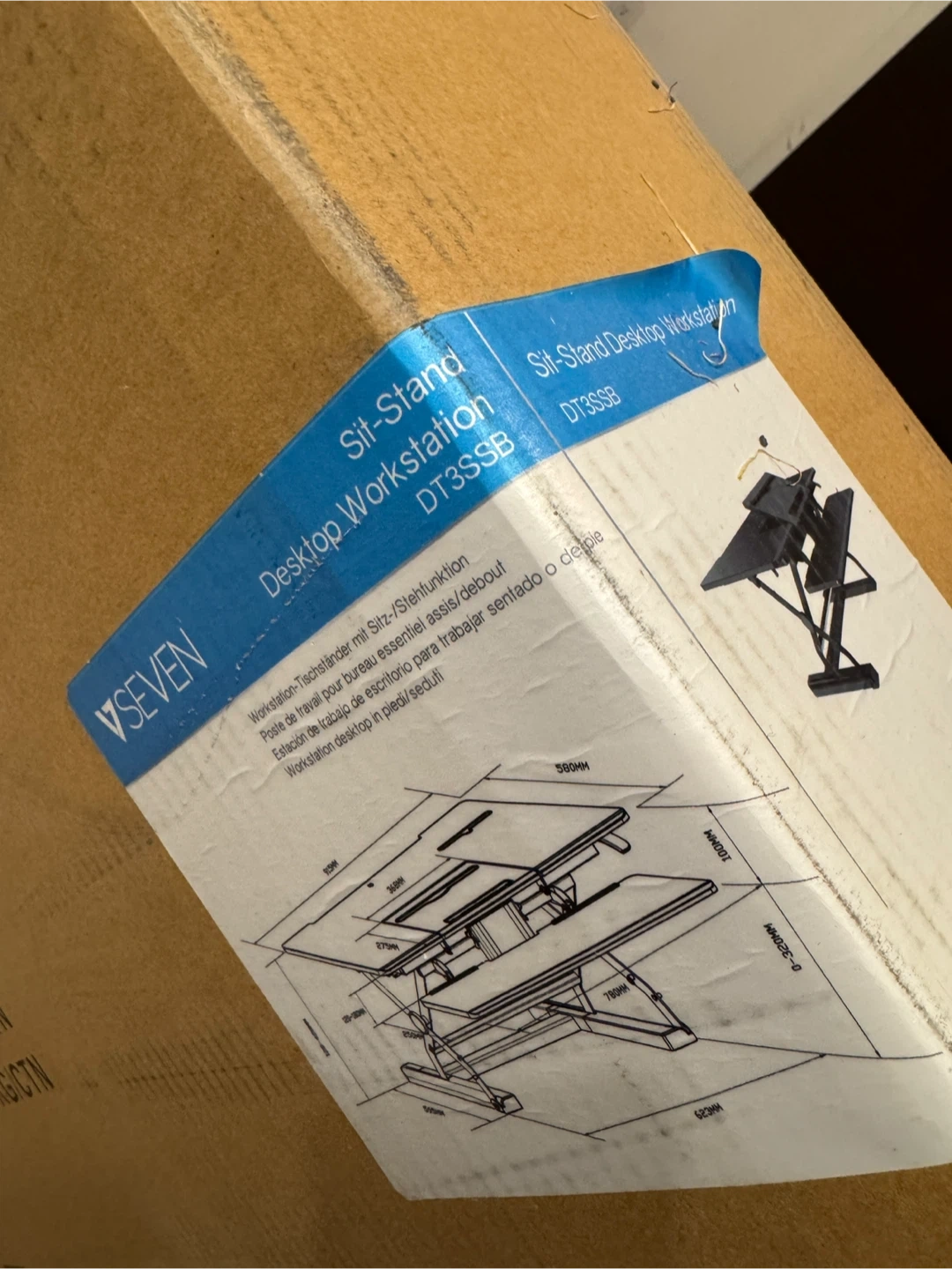 V7 desktop workstation that raises and lowers for sit or stand use. Black metal construction. Includes keyboard tray. Height adjustable for ergonomic comfort.